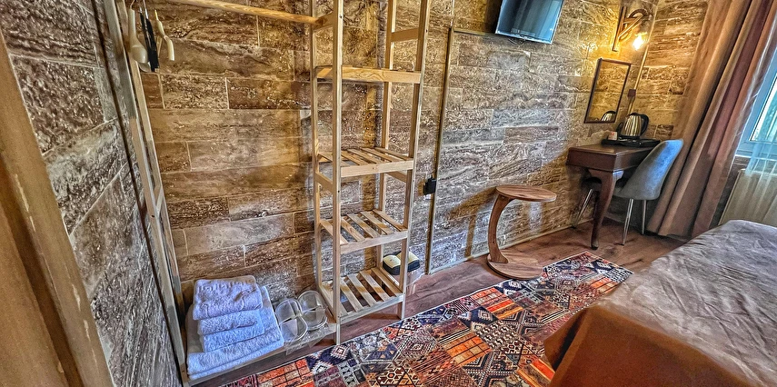 Çavuşin kasabasında, peri bacalarının gölgesinde yer alan “Arton in Cappadocia”, bölgenin mistik dokusunu hissedebileceğiniz bir konumda konuklarını ağırlamaktadır. Taşların oyulmasıyla oluşturulan eşsiz mimarisiyle, Kapadokya’nın ruhunu yansıtan , sizi geçmişin derinliklerine götürecek bir yolculuğa çıkaracak.
