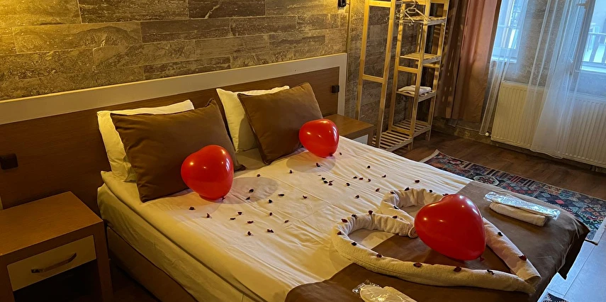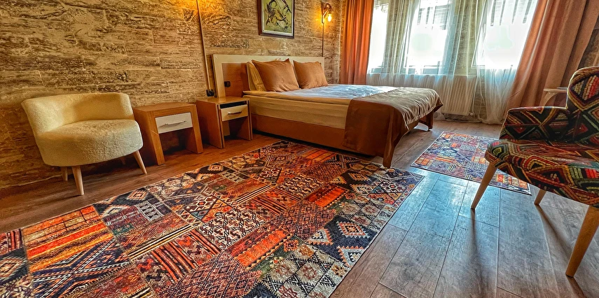 8 özenle dekore edilmiş odasıyla, konforlu konaklamanızı garanti altına alırken, her bir detayda özgünlüğü ve rahatlığı ön planda tutmaktadır. Odalarımızın her biri, modern olanaklarla donatılmış olup, geleneksel Kapadokya dokunuşunu da unutmamaktadır.