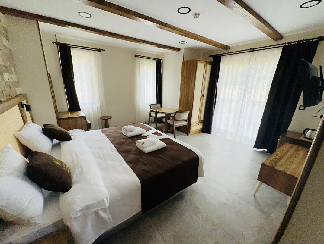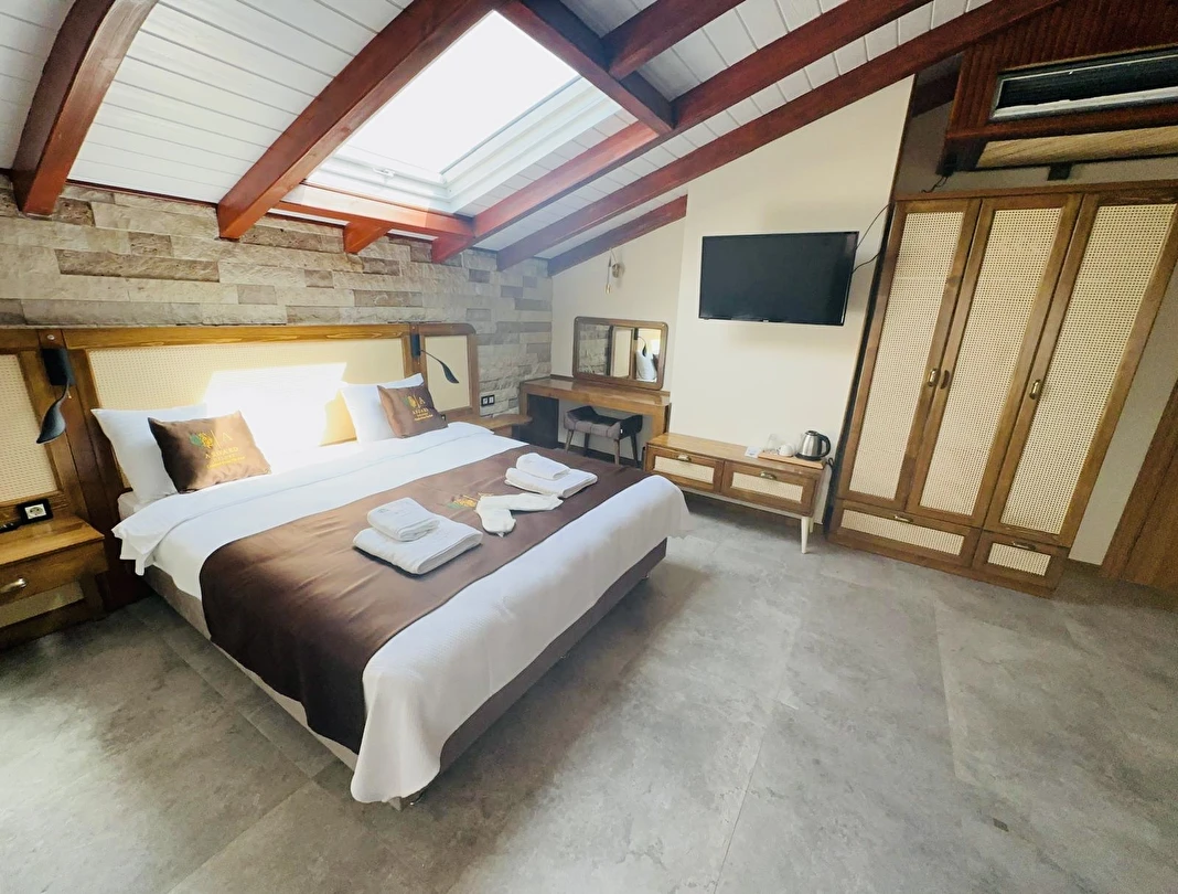 Eşsiz manzarasıyla, Huzurun ve Sakinliğiyle siz değerli misafirlerimiz unutulmaz bir tatil yaşayacağınıza inanıyoruz. Kprfez ve Kaz Dağları manzaralı ve Madra dağının arkasına alarak yüksek değerli oksijeni fark edebileceğiniz harika bir konaklama yeri oşa otelimiz. hijyenik ve göz alıcı Jakuzili odalarımızla veya tüm körfezin kuş bakışı seyredebieceğiniz Aile ve Suit odalarımızda konaklayarak büyülü bir zaman sizleri bekliyor. Otelimizde oda kahvaltı konseptinin yanı sıra, isteğiniz doğrultusunda geniş ve bahçeye açılan Resturantımızda öğle veya akşam yemeklerini siz değerli misafirlerimize hazırlanmaktan memnuniyet duyacağımızı bilmenizi isteriz. Otelimizde konaklama sırasında veya haricinde, Turk Hamamı ve Saunamızdanda faydalanabilir yeniden tazelenip pozitif enerji güne devam edebilirsiniz. Bunların dışında otelimizin bahçesinde Gün Batımını seyredebilir, salıncaklarımızda mutlu anlarınızı öz çekim yaparak mutlu anlarınızı ölümsüzleştirir hayatınıza değer katabilirsiniz.