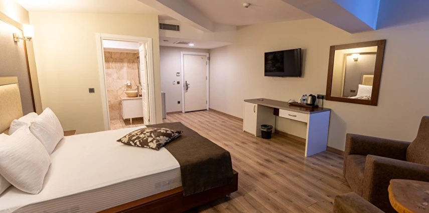 Daha Fazla GösterSizlere bir otelden bekleyeceğiniz tüm konforu ve hizmeti sunmayı amaçlayan Asia Bussines Suits; yeni finans merkezinin kalbinde sizleri şehrin karmaşasından uzaklaştırıp lüks ve konforlu odalarda ağırlamak için tasarlandı. İş dünyasının çözüm ortağı olma misyonuyla yola çıkan Asia Bussines Suits; hizmet ve kalitede değişen dünya standartlarına uygun hizmet vermektedir. Bünyemizdeki 20 odanın hepsini konuklarımıza üst düzey konforu sunmak için tasarlandı. Odaların tamamı ayrıcalıklı konaklama hizmeti anlayışına uygun modern mimari, fonksiyonel mobilyalar ve dinlendirici renklerle dekore edildi. Asia Business Suits tüm iş ziyaretleriniz ve şirket toplantılarınızda çözüm ortağınız olacaktır.