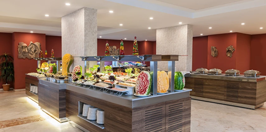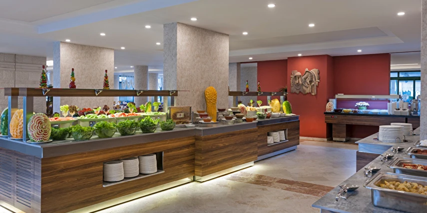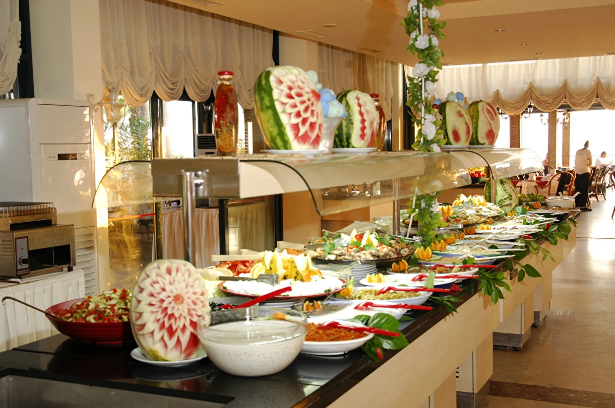 Sabah kahvaltısı, öğle ve akşam yemekleri açık büfe olup, tesisin belirlemiş olduğu markalar dahilinde yerli içecekler 10:00 ile 00:00 saatleri arasında ücretsizdir. İthal içecekler ve taze meyve suyu ücretlidir.