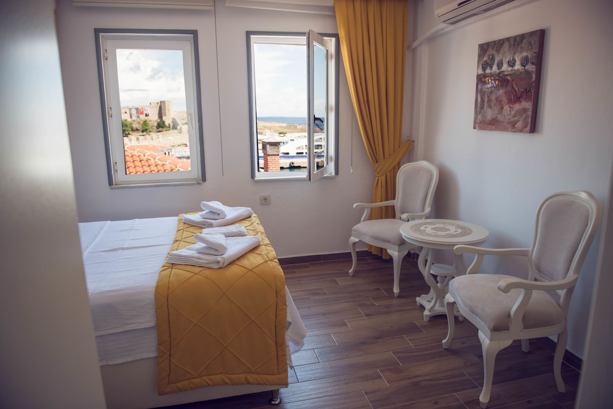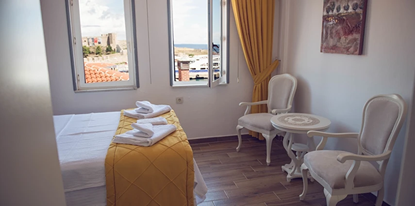 Bozcaada'da bulunan işletmemiz Limanın sol tarafında bulunmaktadır. Gemiden indiğinizde 4-5 dakikalık yürüme mesafesindedir. Gayet merkezi konumda bulunan otelimiz her yere yürüme mesafesindedir. Restoranlar otelimizin 50 adım önünden başlamaktadır. Gelecek konuklarımızın araçları için park problemimiz yoktur.