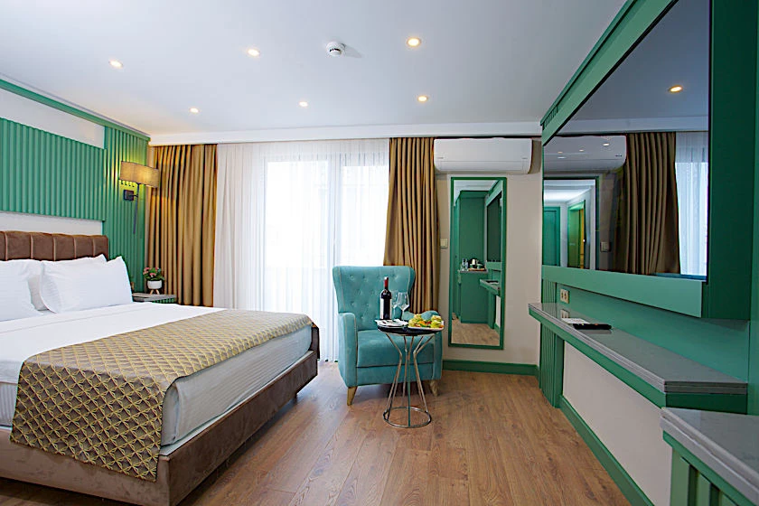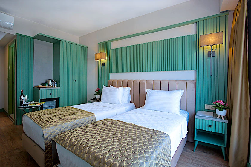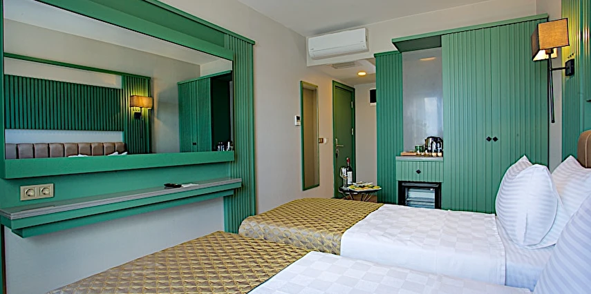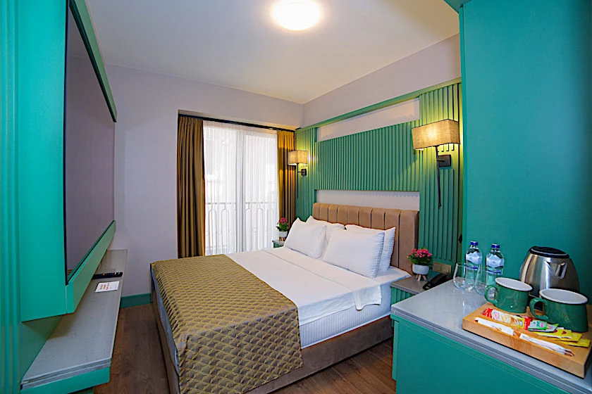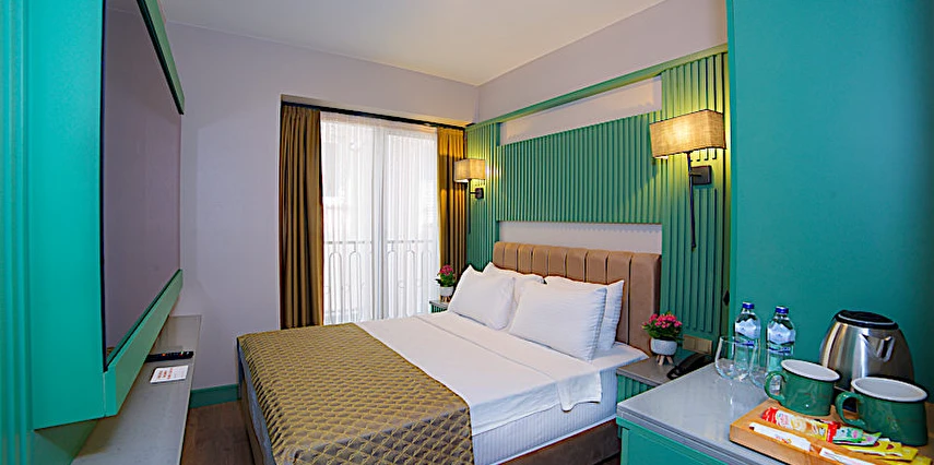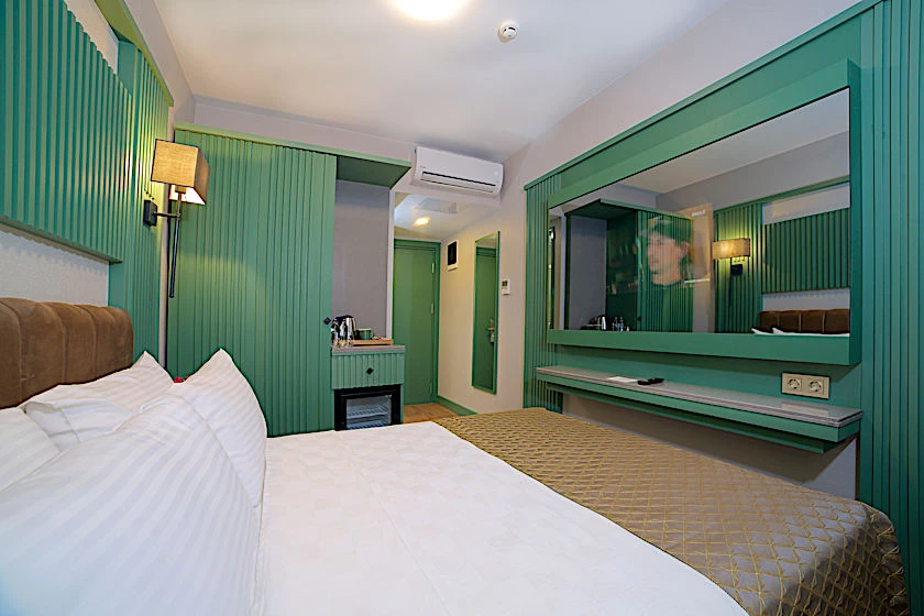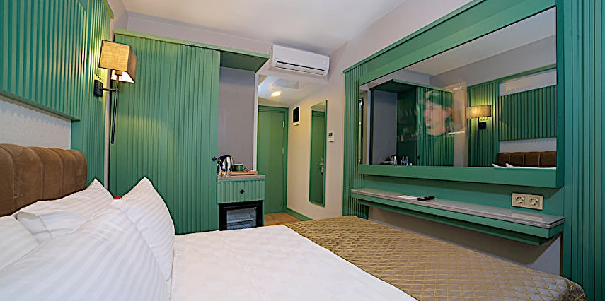 Otel, ses yalıtımlı odalar sunar, bu sayede merkezi konumuna rağmen huzurlu bir konaklama vaat eder.