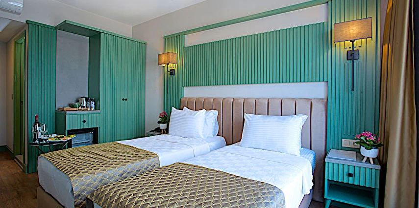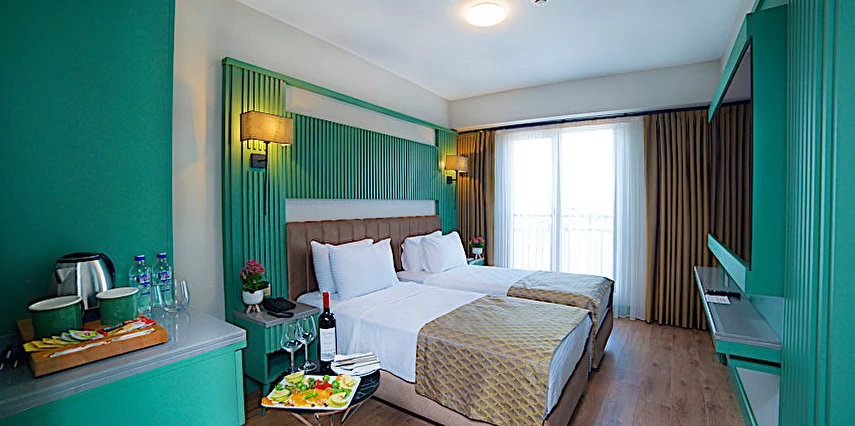Odalarda klima, minibar, özel banyo, saç kurutma makinesi, TV gibi standart konfor elemanları bulunur.