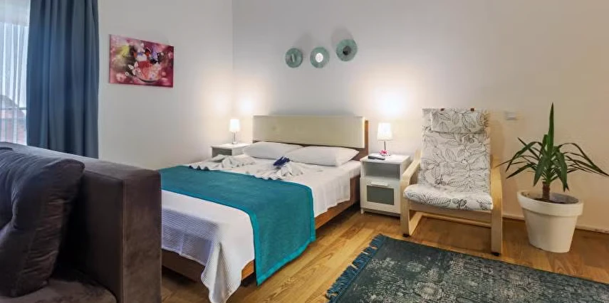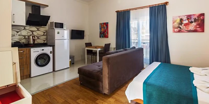 Tesis, ferah ve tam donanımlı apart daire seçenekleri ile aileler, arkadaş grupları veya uzun süreli konaklamalar için uygun bir alternatif sağlar. Bazı birimlerde balkon, deniz/günlük yaşam manzarası ve özel mutfak gibi pratik özellikler bulunur ve ücretsiz Wi-Fi hizmeti ile modern ihtiyaçlara cevap verir.