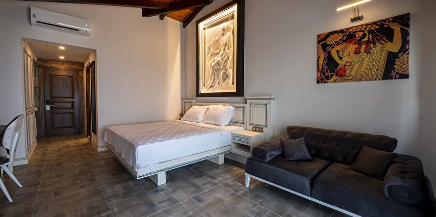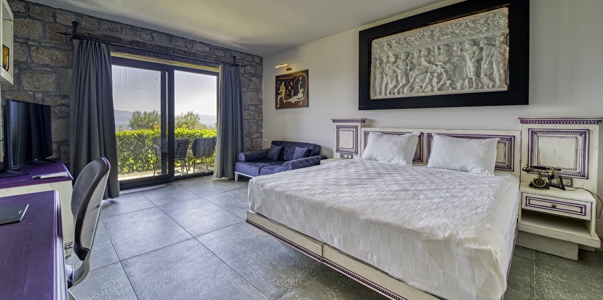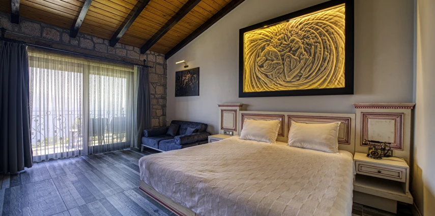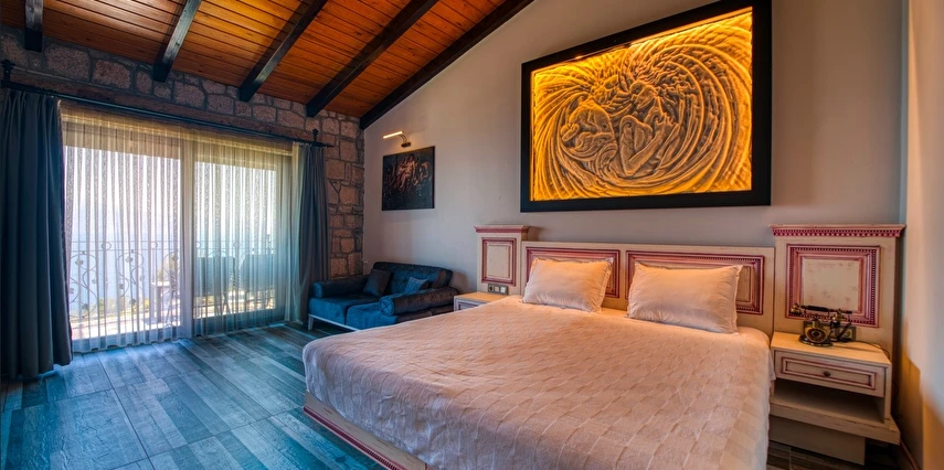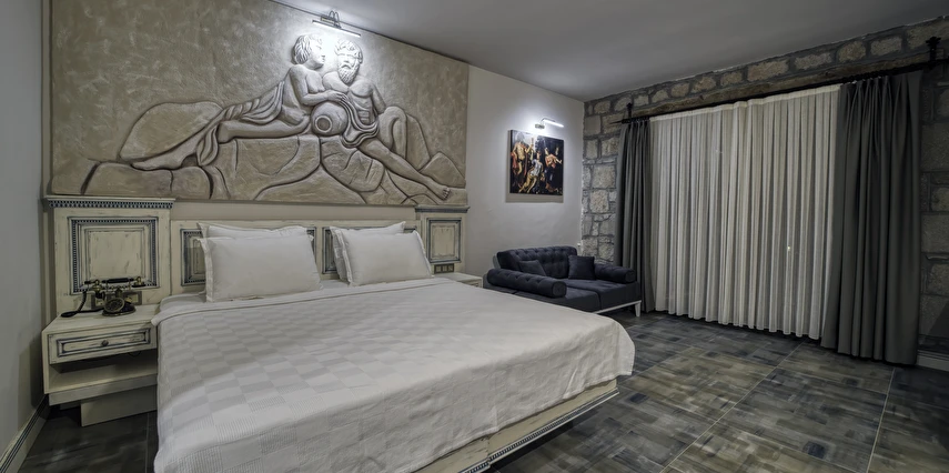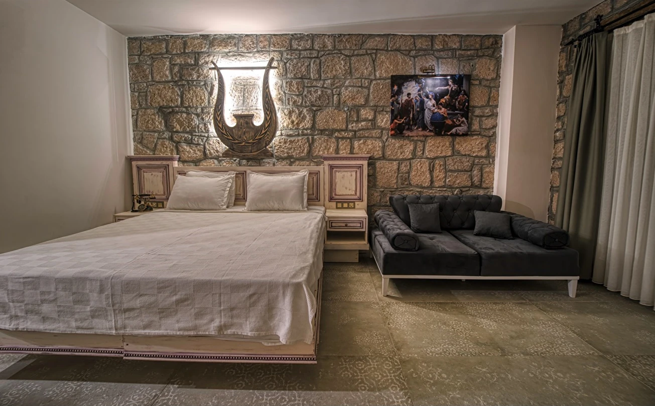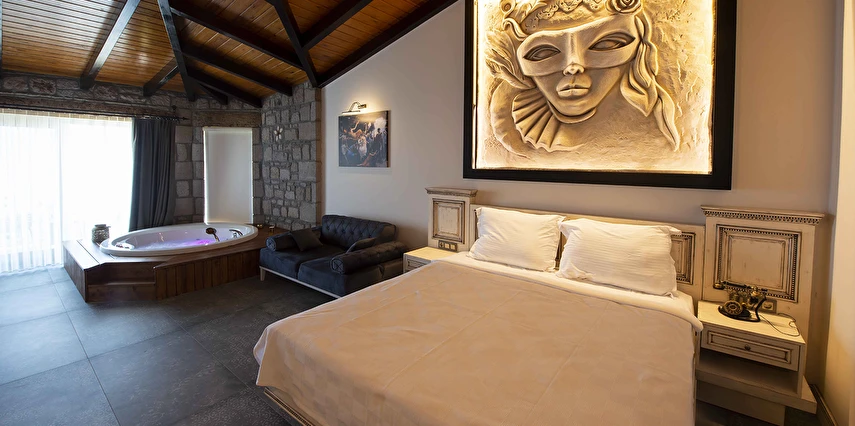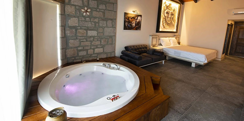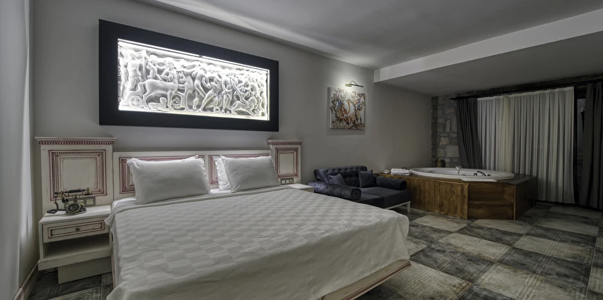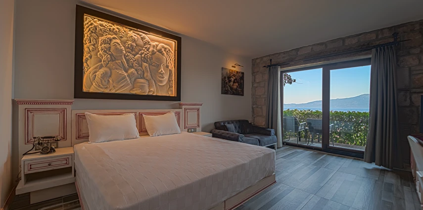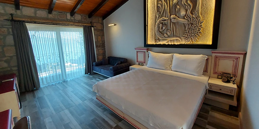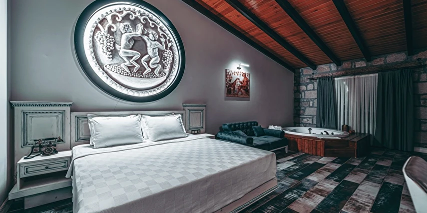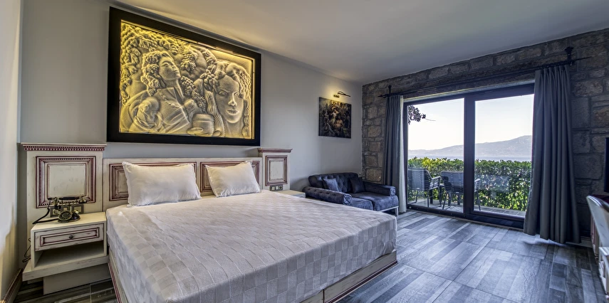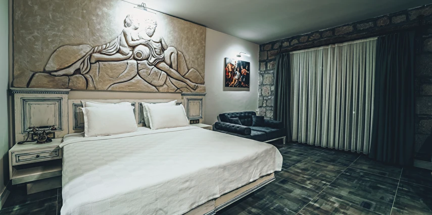 Assos Dionysos Special Class Hotel’in; Şarap ve Aşk Tanrısı DIONYSOS teması ile dekore edilmiş, özenle hazırlanmış, birbirinden farklı deluxe odaları bulunmaktadır. tam pansiyon hizmet veren butik temalı otelimiz denize sıfırdır. Kıyı Ege’nin en güzel bölgelerinden biri olan Assos’ta, Sivrice ve Sokakağzı Koylarının birleştiği, Yunanistan’ın Midilli Adası manzarasına sahiptir. Toplam 78,000 m2 alanda kendinizi özel hissetmeniz, doğa ve huzuru doyasıya yaşamanız için birbirinden farklı odaları bulunmaktadır. Her birisi birbirinden farklı 31 deluxe oda ve size ait iskele ile deniz. Sabah yöresel ürünlerle zenginleştirilmiş serpme kahvaltı keyfi ile Midilli Adası ve deniz manzarası. Öğle yemekleri için şefimiz tarafından özel hazırlanmış snack menü ile iskelemizde servis. Akşamları Restoranımız da gün batımını izlerken şefimizin her güne özel olarak hazırlamış olduğu zeytinyağlı başlangıçlar ,sıcak çorba, ara sıcak, salata, tatlı , mevsim meyveleri, günün special eti, günün special tavuğu, günün special balığı seçmeli olarak, kişiye özel , set menü şeklinde servis ve zengin şarap menümüz. Şarap mahzenimizde birbirinden özel yöresel ve dünya şarapları sizleri bekliyor. Odalarımızda rahatınız ve konforunuz için mini bar, emanet kasası, telefon, klima, saç kurutma makinesi, buklet malzemeleri, tuvalet, banyo, terlik, uydu kanalları, lcd tv, elektrikli su ısıtıcı, gardırop/dolap ve wifi mevcuttur.