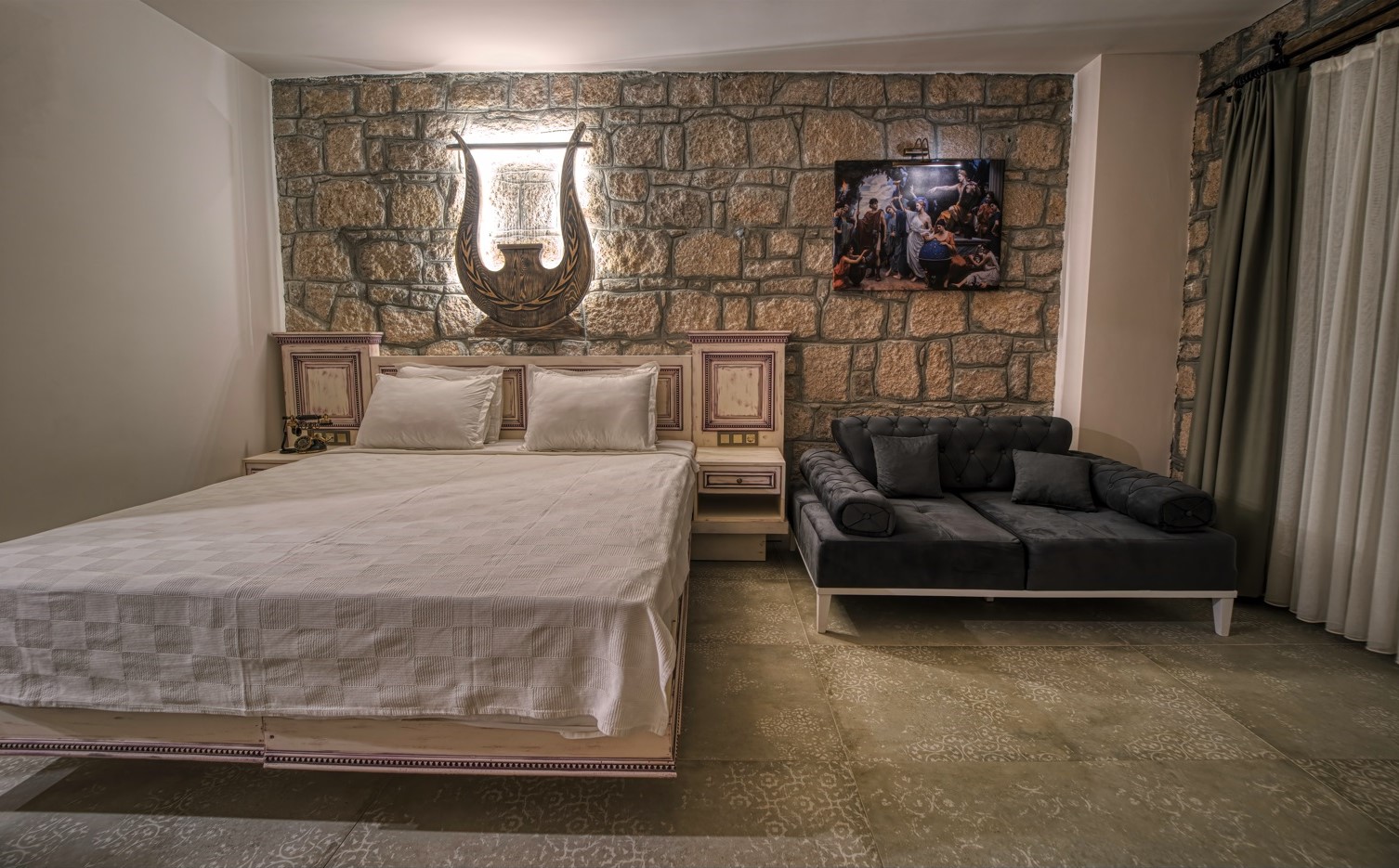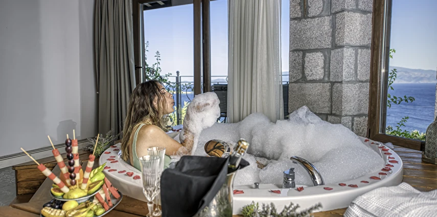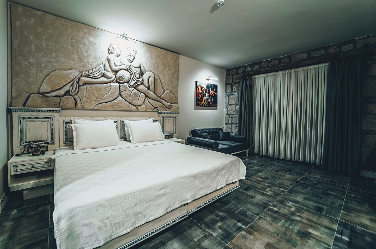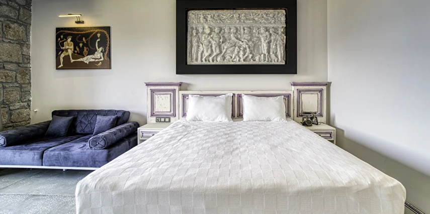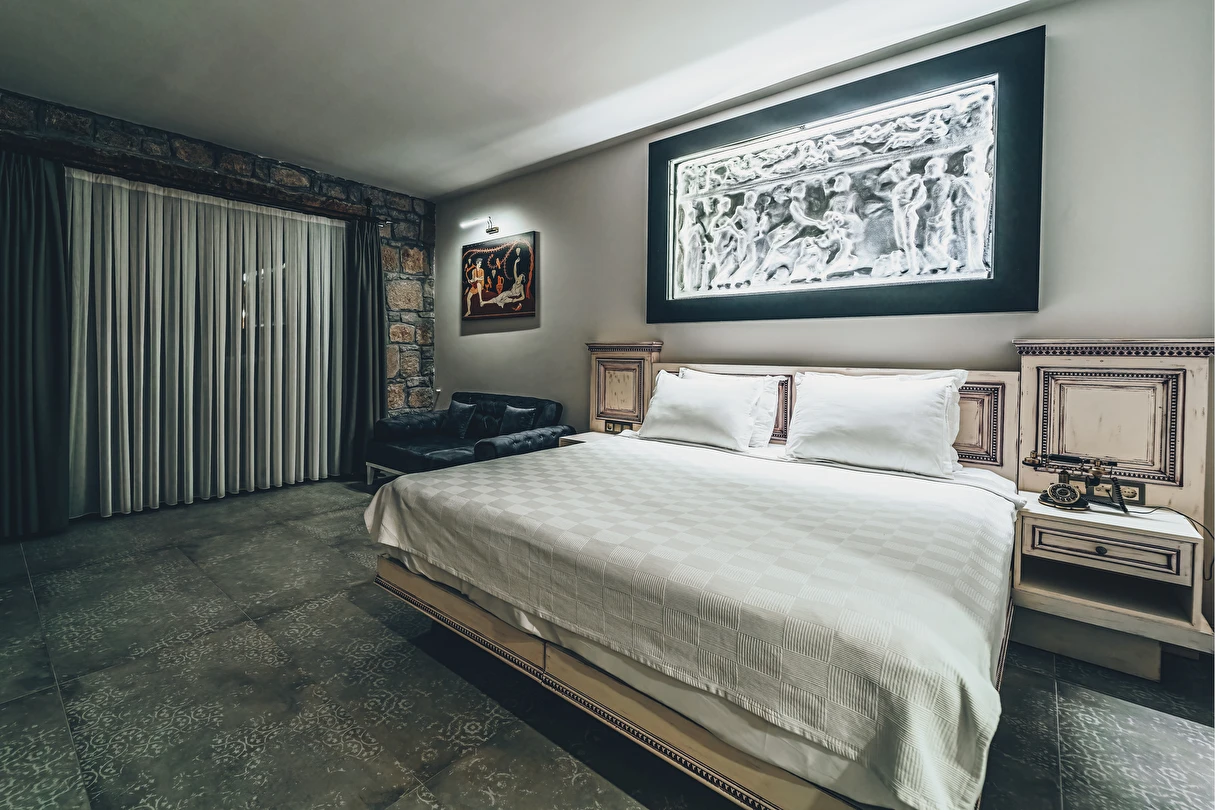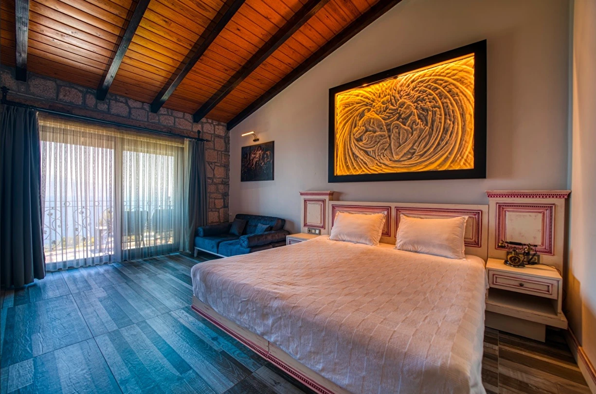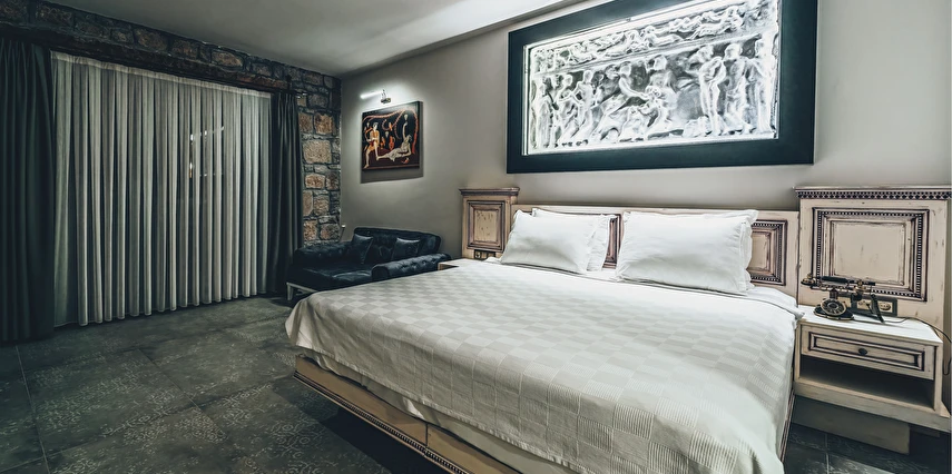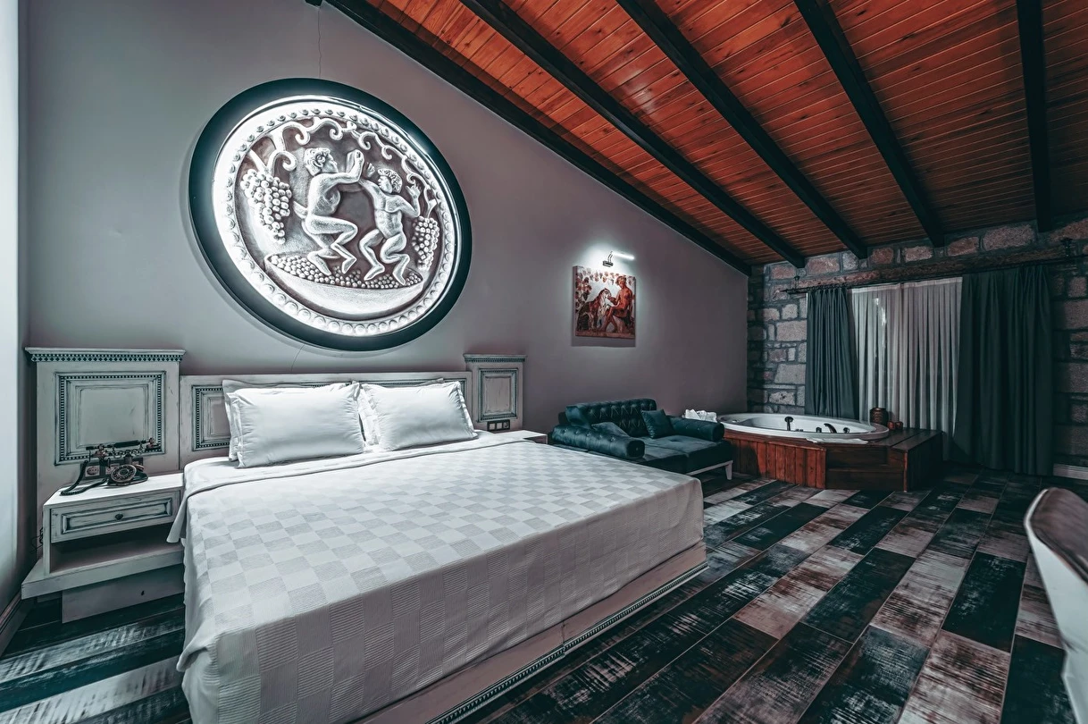 Assos Dionysos Special Class Hotel’in; Şarap ve Aşk Tanrısı DIONYSOS teması ile dekore edilmiş, özenle hazırlanmış, birbirinden farklı deluxe odaları bulunmaktadır. tam pansiyon hizmet veren butik temalı otelimiz denize sıfırdır. Kıyı Ege’nin en güzel bölgelerinden biri olan Assos’ta, Sivrice ve Sokakağzı Koylarının birleştiği, Yunanistan’ın Midilli Adası manzarasına sahiptir. Toplam 78,000 m2 alanda kendinizi özel hissetmeniz, doğa ve huzuru doyasıya yaşamanız için birbirinden farklı odaları bulunmaktadır. Her birisi birbirinden farklı 31 deluxe oda ve size ait iskele ile deniz. Sabah yöresel ürünlerle zenginleştirilmiş serpme kahvaltı keyfi ile Midilli Adası ve deniz manzarası. Öğle yemekleri için şefimiz tarafından özel hazırlanmış snack menü ile iskelemizde servis. Akşamları Restoranımız da gün batımını izlerken şefimizin her güne özel olarak hazırlamış olduğu zeytinyağlı başlangıçlar ,sıcak çorba, ara sıcak, salata, tatlı , mevsim meyveleri, günün special eti, günün special tavuğu, günün special balığı seçmeli olarak, kişiye özel , set menü şeklinde servis ve zengin şarap menümüz. Şarap mahzenimizde birbirinden özel yöresel ve dünya şarapları sizleri bekliyor. Odalarımızda rahatınız ve konforunuz için mini bar, emanet kasası, telefon, klima, saç kurutma makinesi, buklet malzemeleri, tuvalet, banyo, terlik, uydu kanalları, lcd tv, elektrikli su ısıtıcı, gardırop/dolap ve wifi mevcuttur.