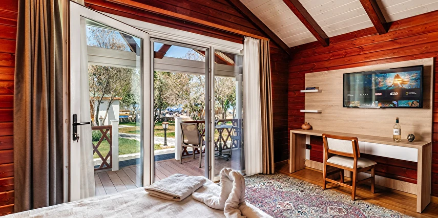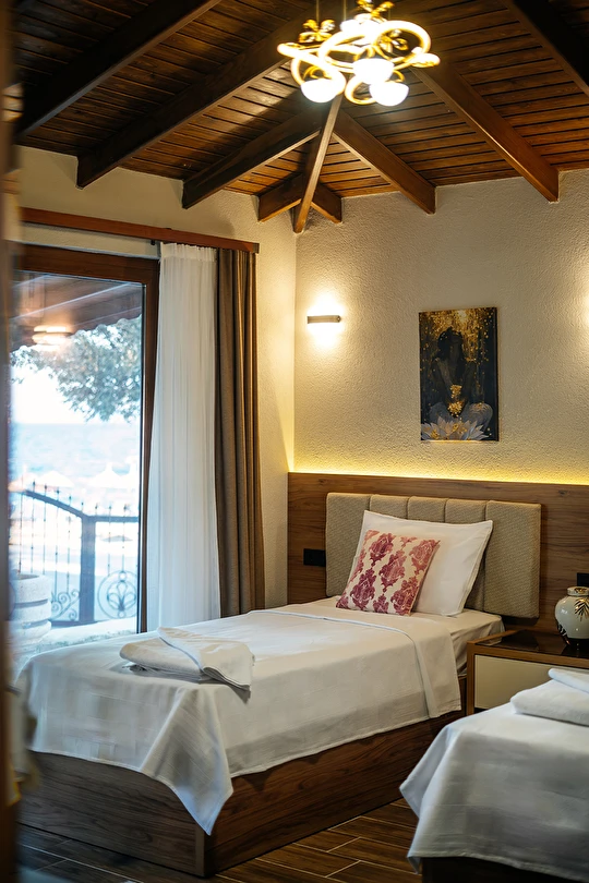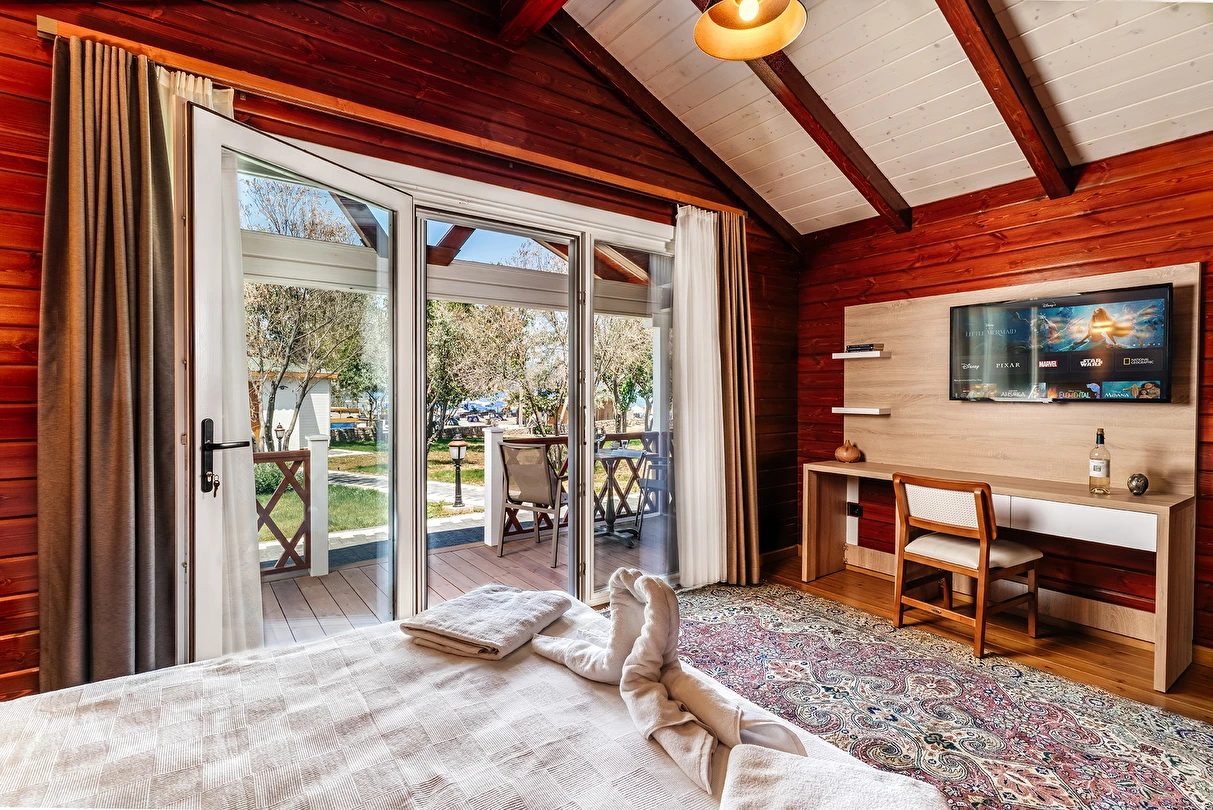 Doğal dokuların sıcaklığını ve samimiyetini hissetmek isteyen misafirlerimiz için tasarladığımız Ahşap Oda seçeneklerimiz, size otantik ve huzur dolu bir atmosfer sunar.