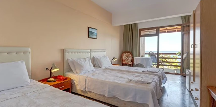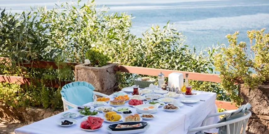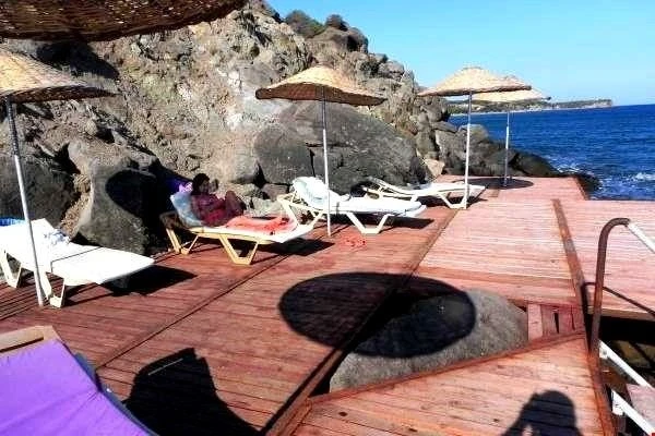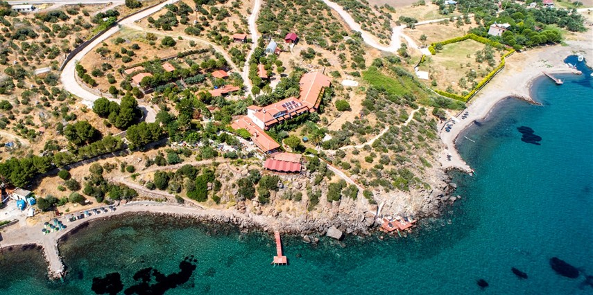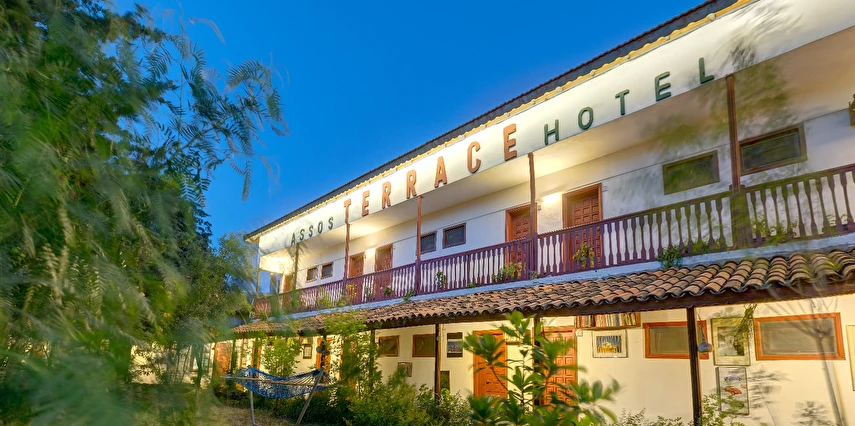 Çanakkale'nin Ayvacık ilçesine bağlı Behramkale Köyü’nde yer alan Assos, doğal güzellikleri ve tarihi değerleri ile öne çıkan bir alan. Böyle güzel bir yerde hizmet veren Assos Terrace Hotel de yemyeşil bahçesinde doğa ile iç içe olma imkanı sunan, hizmet kalitesi ve güler yüzlü personelleri ile misafirler tarafından beğenilen güzel bir tesis. Sahil kenarında yer alan Assos Terrace Hotel, huzuru ve konforu buluşturan odalarında misafirlerini ağırlıyor. Sade ve modern detaylar ile dekore edilen odalarında ev rahatlığı sunan tesisin yeşillikler ile çevrili bir bahçesi de var. Tesisin odalarından deniz manzarası görülebiliyor. Misafirler tesisin özel plaj alanından denize girerek ya da tesisin bahçesinde oturarak keyifli anlar yaşayabilir. Assos Terrace Hotel’in restoranında oldukça leziz yemekler servis ediliyor. Tesis bünyesinde kütüphane, emanet kasası ve güneşlenme terası mevcut. Dileyen misafirler tesisten bisiklet kiralayarak çevreyi gezebilir. Tesisin kendine ait otopark alanı ve ücretli havalimanı servisi imkanı var. Assos’ta doğayla baş başa bir tatil imkanı sunan Assos Terrace Hotel, ev sıcaklığını yaşatan atmosferi ve güler yüzlü hizmeti ile Assos tatiline keyif katıyor.