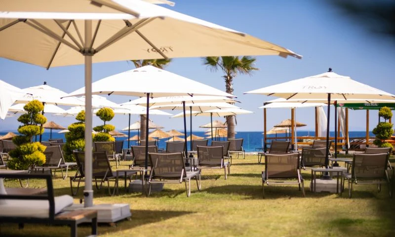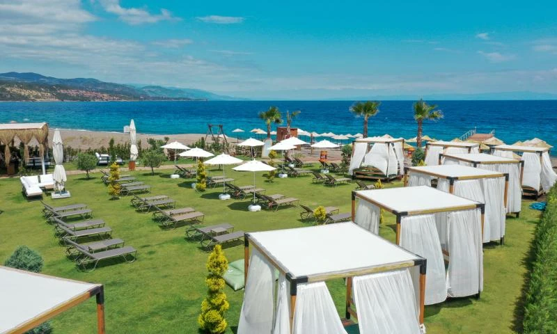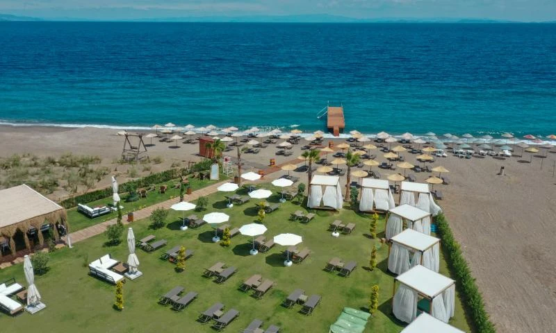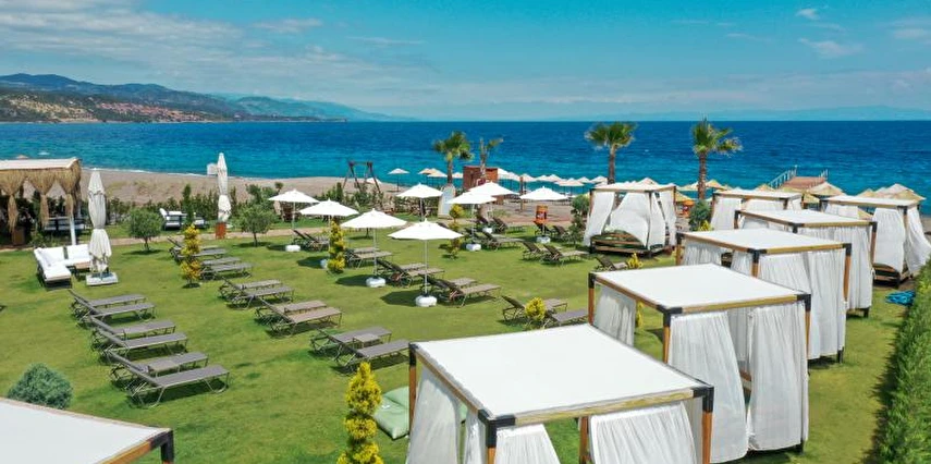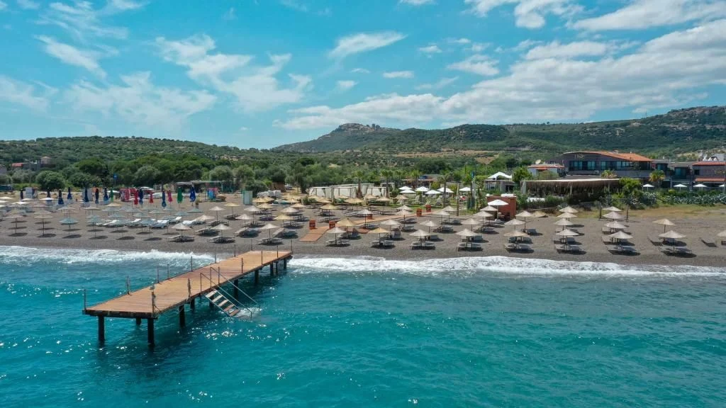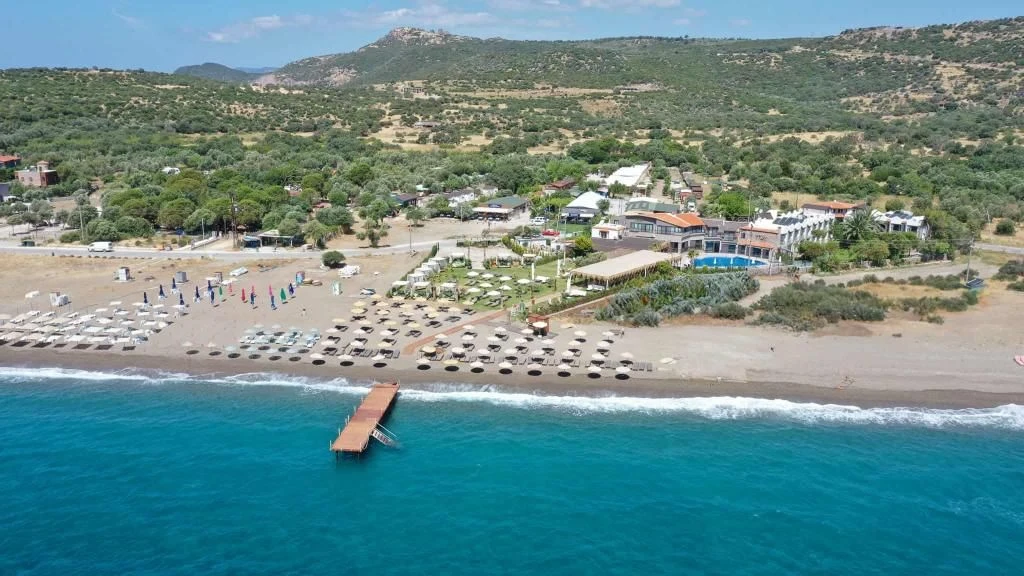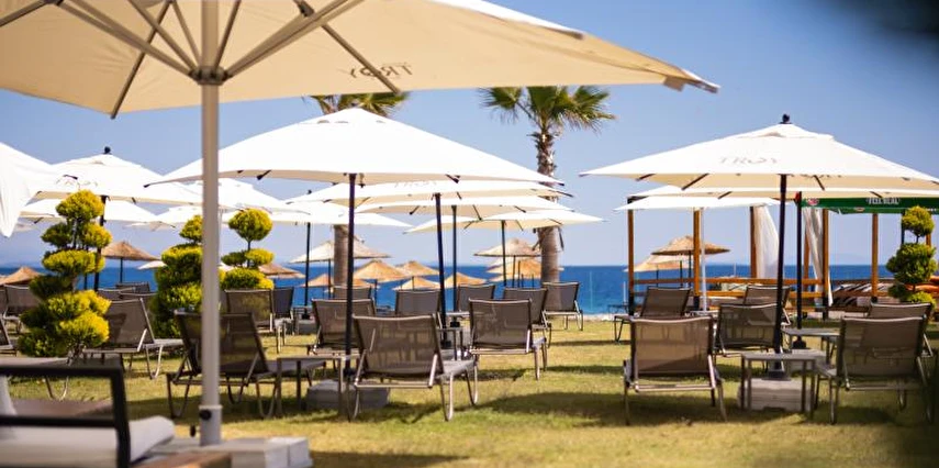 ASSOS TROY BEACH doğa ve denizin arasında eşsiz mimarisi ile, tam Kadırga koyunun ortasına yerleşmiş, Midilli Adası ve diğer tüm manzaraya hakim olup misafirlerini maksimum hizmet ve memnuniyet ilkesi ile ağırlamaya devam ediyor.