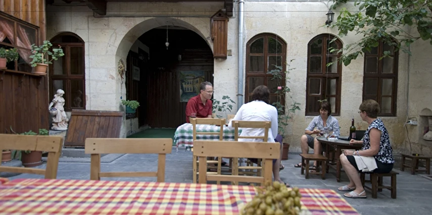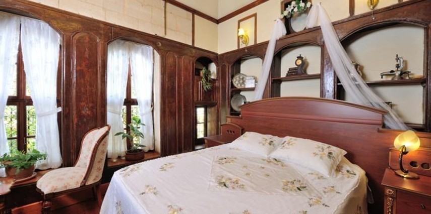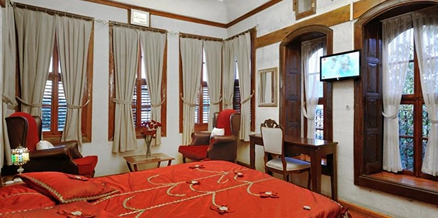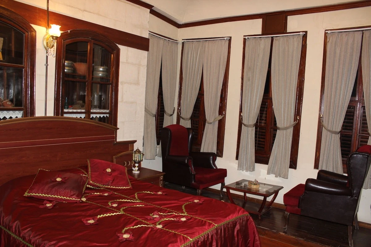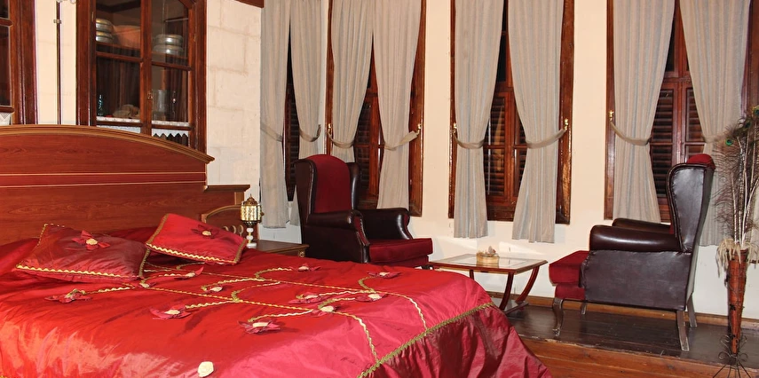 Daha Fazla GösterTesisimizde konaklama gerçekleştirecek çiftler evlilik cüzdanı ibraz etmeleri gerekmektedir. Osmanlı döneminde yapılmış bir konağın, restore edilmesi ile hizmete açılan tesis, şehir merkezinde misafirlerini ağırlıyor. 5 odası bulunan tesisin odalarında; minibar, banyo, klima, kablosuz internet, kasa, televizyon, WC, buklet banyo ürünleri ve saç kurutma makinesi bulunuyor. Tesiste; lobi, otopark, resepsiyon hizmeti, kablosuz internet ve faks hizmetleri gibi imkanlar da mevcut. Tesiste sabah kahvaltı servisi yapılan bir kahvaltı salonu mevcut. Tesis; Otogar'a 5 km, havaalanına ise 18 km uzaklıkta konumlanıyor. Tesisimizde konaklama gerçekleştirecek çiftler evlilik cüzdanı ibraz etmeleri gerekmektedir. Osmanlı döneminde yapılmış bir konağın, restore edilmesi ile hizmete açılan tesis, şehir merkezinde misafirlerini ağırlıyor. 5 odası bulunan tesisin odalarında; minibar, banyo, klima, kablosuz internet, kasa, televizyon, WC, buklet banyo ürünleri ve saç kurutma makinesi bulunuyor. Tesiste; lobi, otopark, resepsiyon hizmeti, kablosuz internet ve faks hizmetleri gibi imkanlar da mevcut. Tesiste sabah kahvaltı servisi yapılan bir kahvaltı salonu mevcut. Tesis; Otogar'a 5 km, havaalanına ise 18 km uzaklıkta konumlanıyor. Osmanlı dönemindeki bir konağın, restore edilmesi ile hizmet vermeye başlayan Asude Konak, Gaziantep şehir merkezinde misafirlerine hem iş hem de turistik konaklamalar için keyifli bir alternatif sunuyor.
