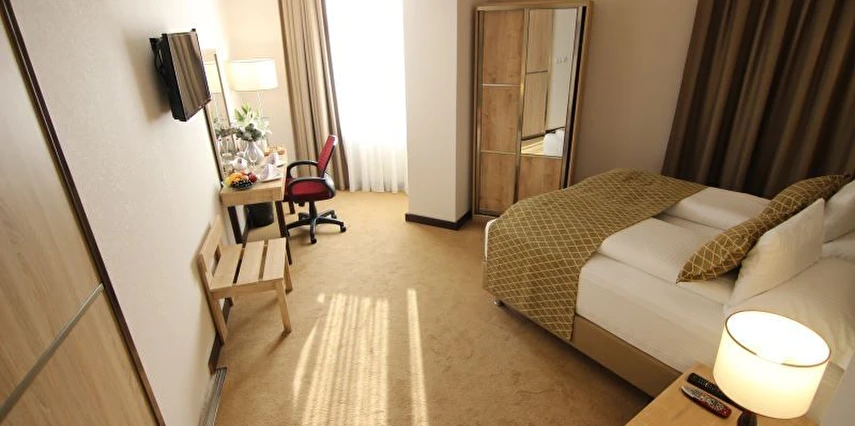 45 standart, 4 aile odası ve 1 cumhuriyet süiti ile toplam 50 odanın yanı sıra 30 kişilik kapsamlı toplantı salonu, 40 kişilik restoranı ve 15 kişilik kafe salonu ile misafirlerine hizmet vermektedir.