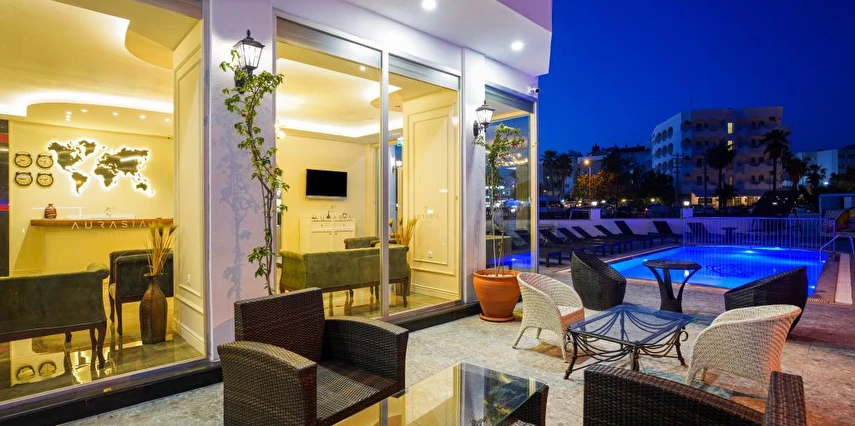 Tesis misafirleri Aurasia Beach Hotel plajını kullanabilmektedir, 08:00 ile 17:00 saatleri arasında ücretsiz olarak hizmet vermektedir.