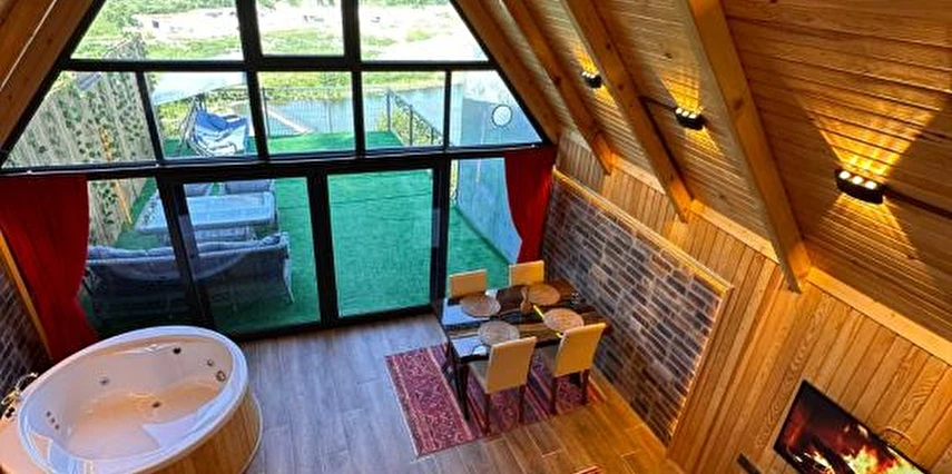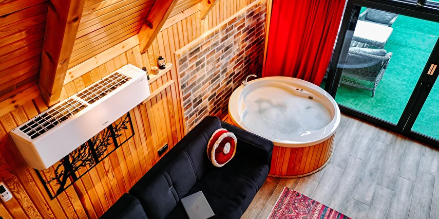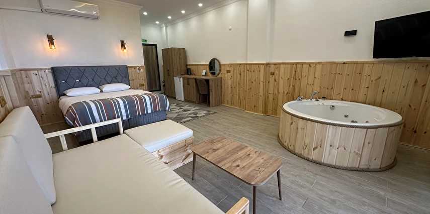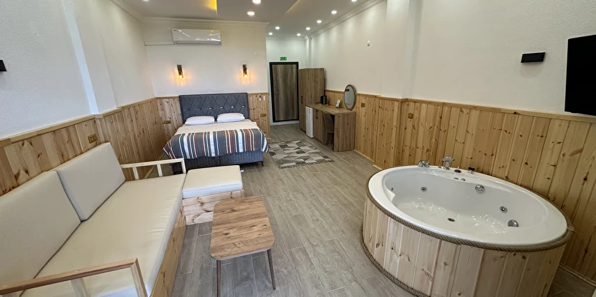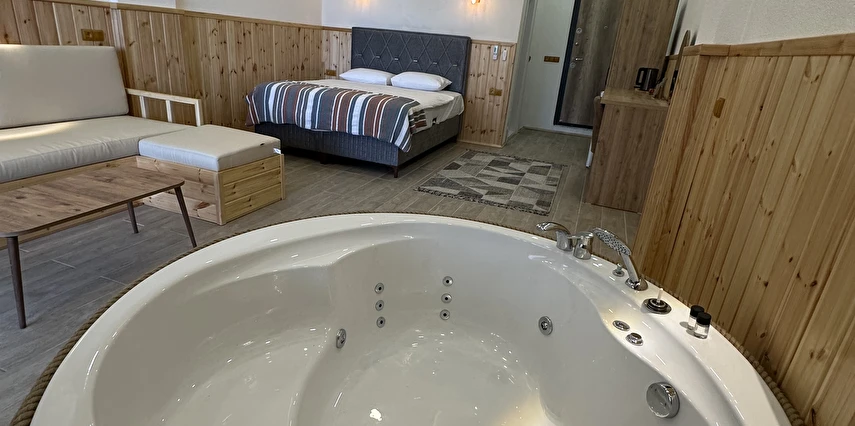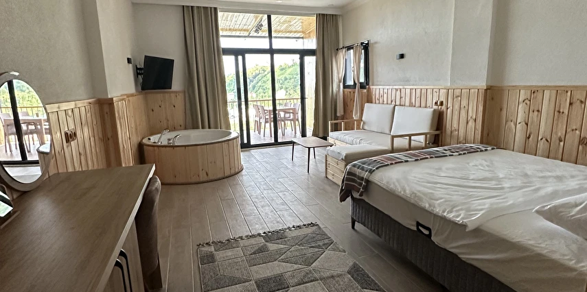Daha Fazla GösterAhşap mimarisiyle doğayla uyumlu olarak tasarlanan bungalovlarımız; özel jakuzi, balkon veya teras alanları ve şık iç dekorasyonlarıyla konforu en üst seviyeye taşır. Her biri özenle hazırlanan suit odalarımız, balayı çiftlerinden doğa tutkunlarına kadar farklı beklentilere hitap eder.