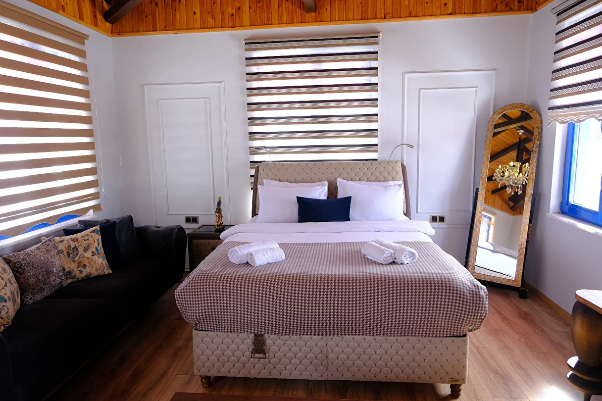 Aybelya Tatil Köyü’nün farklı konseptlerde tasarlanmış bunalov villaları arasında Jakuzili Suit, Deluxe 4 Kişilik ve Standart 2 Kişilik seçenekler bulunur. Her bir bungalov, konforlu iç mekânı ve modern donanımlarıyla tatilinizi özel kılar.