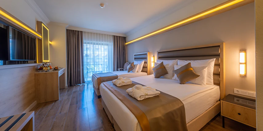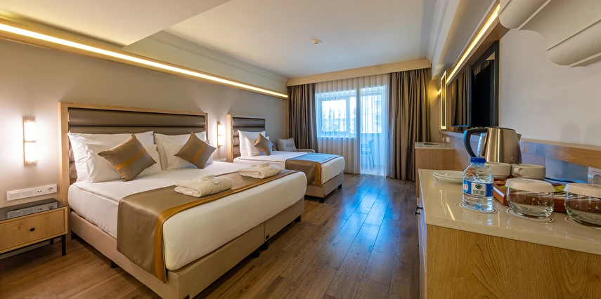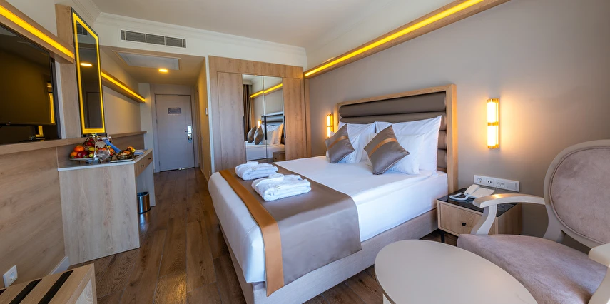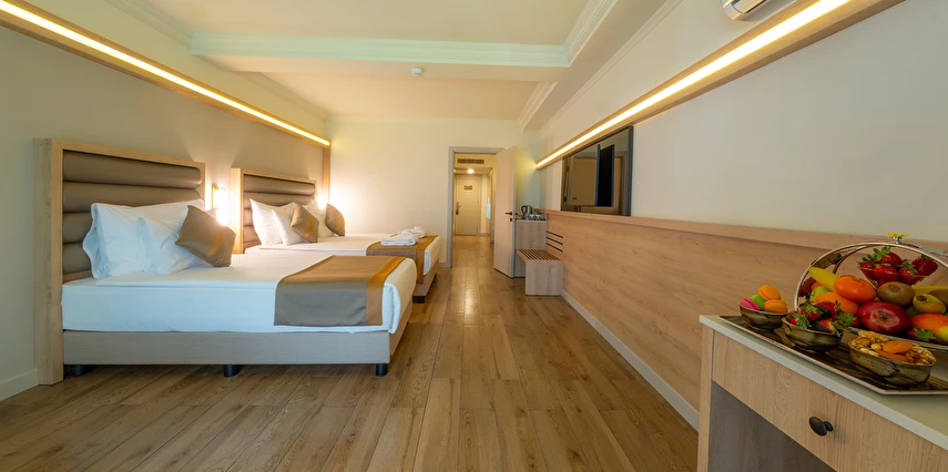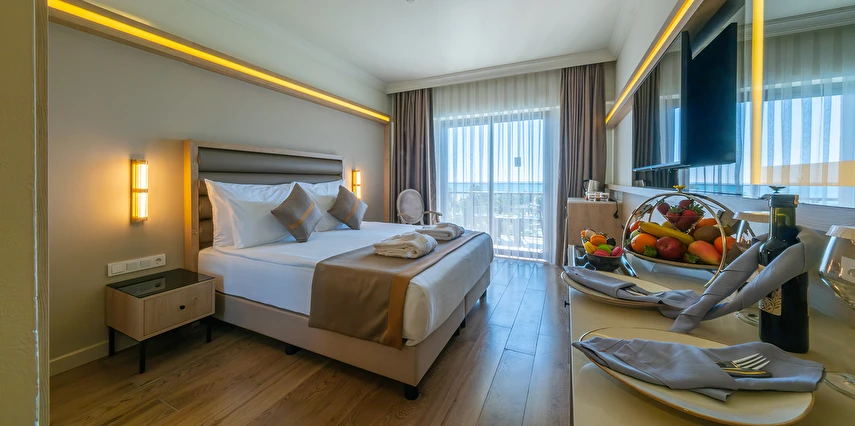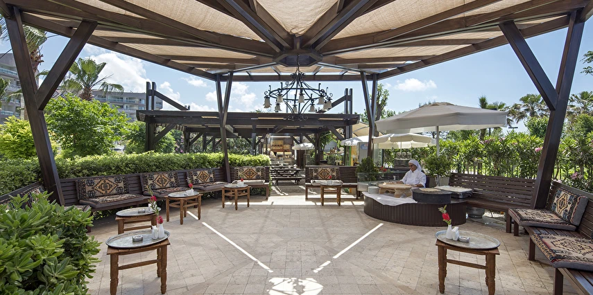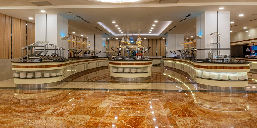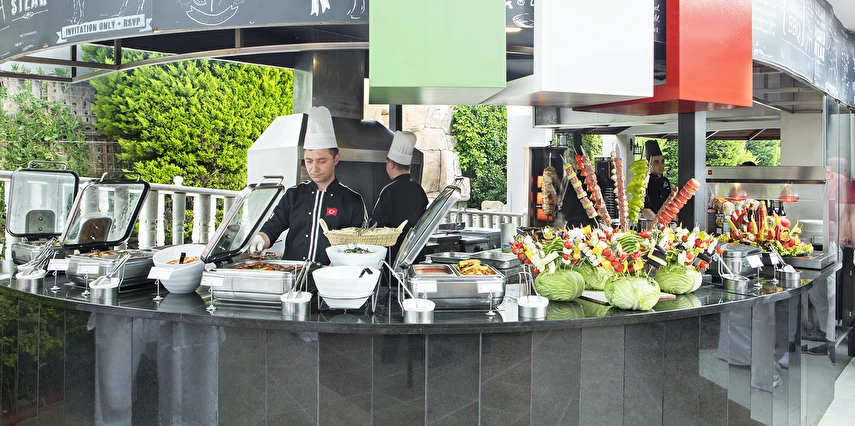 Sabah kahvaltısı, öğle ve akşam yemekleri açık büfe olup tesisin belirlediği markalar dahilinde lokal alkollü & alkolsüz içecekler ve bazı ithal alkollü içecekler 24 saat ücretsizdir. Taze sıkılmış portakal suyu ve yerli / yabancı şişe içeçekler ücretlidir.