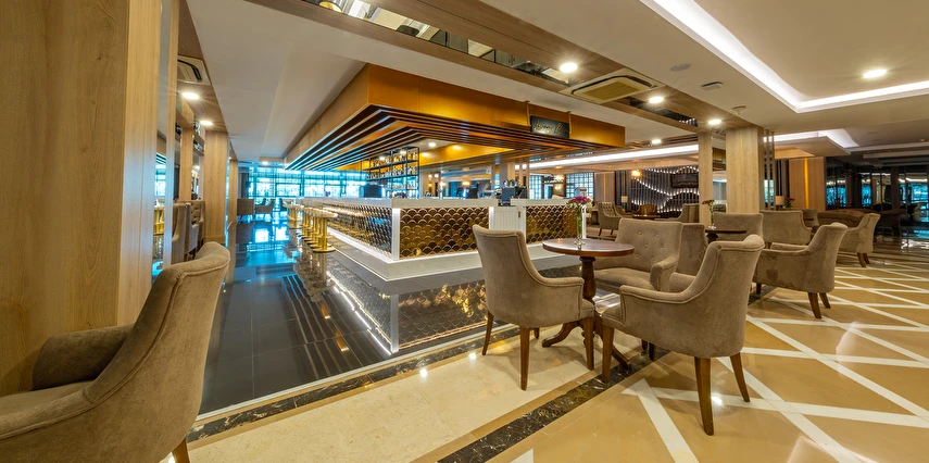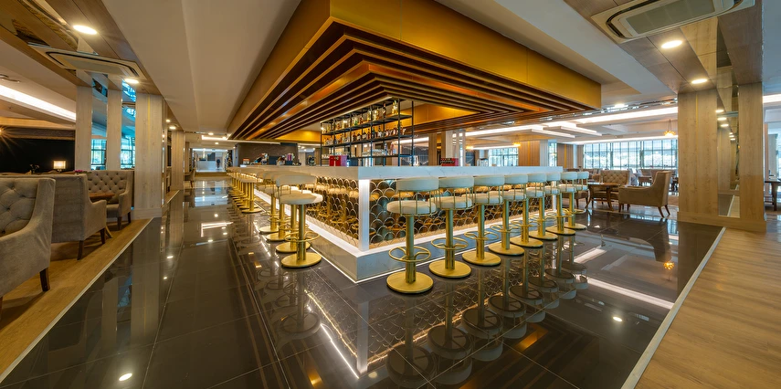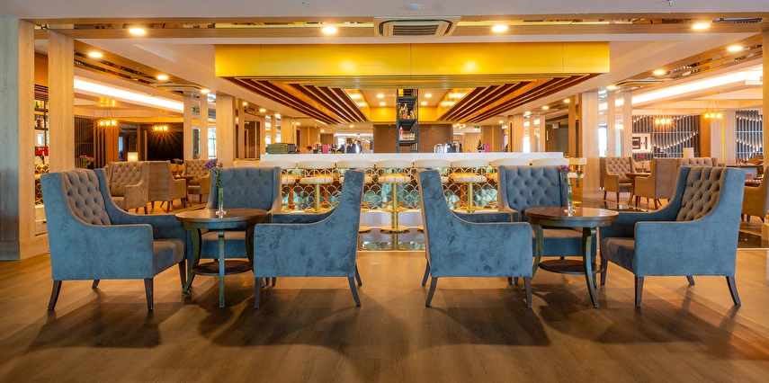 Lounge Bar (18:00 ile 00:00 saatleri arasında)(Sıcak ve soğuk soft içecekler, konsept dahili yerli ve bazı yabancı alkol içkiler)