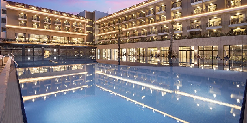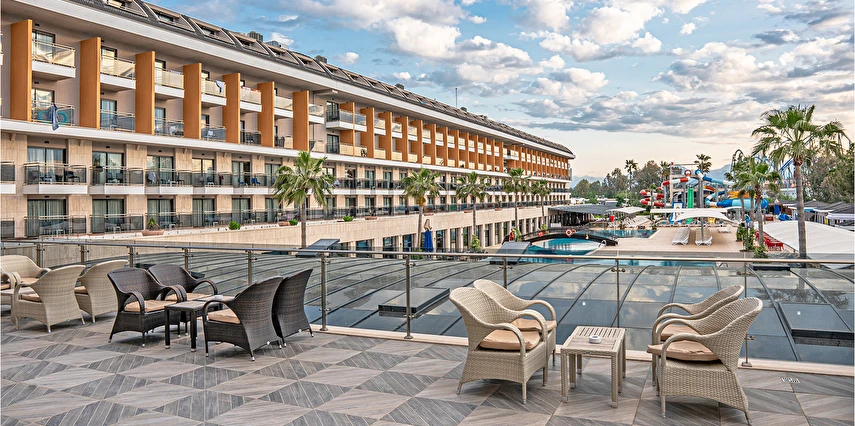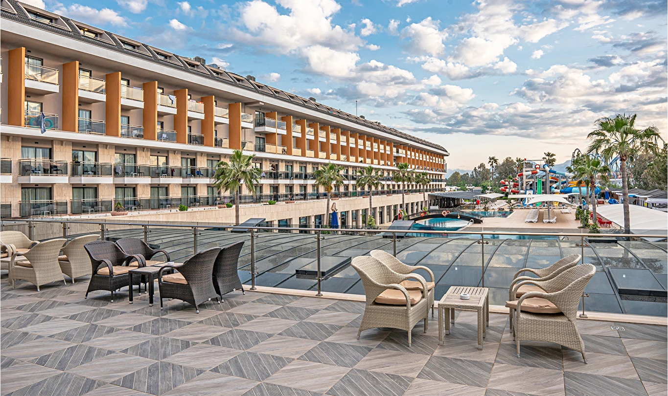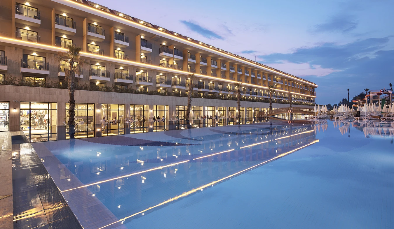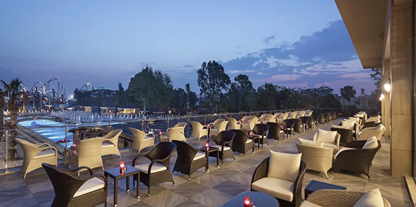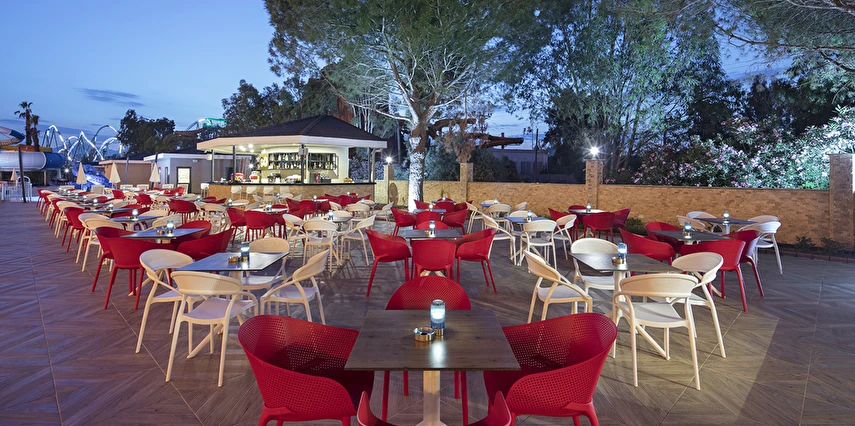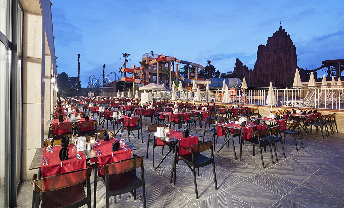 Sabah kahvaltısı, öğle ve akşam yemekleri açık büfe olup tesisin belirlediği markalar dahilinde lokal alkollü & alkolsüz içecekler ve bazı ithal alkollü & alkolsüz içecekler 24 saat ücretsizdir. Taze sıkılmış meyve suları, enerji içecekleri, şişeli içecekler ve konsept dışında kalan delüks içecekler ücretlidir. Alkollü içecekler kahvaltıda servis edilmez. Tüm Restaurant ve barlarda alkol ve içecek servisi kadeh ile yapılmaktadır. Türk kahvesi ücretsizdir.