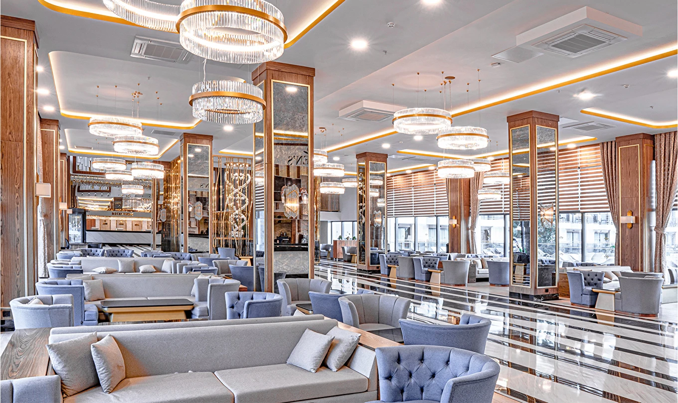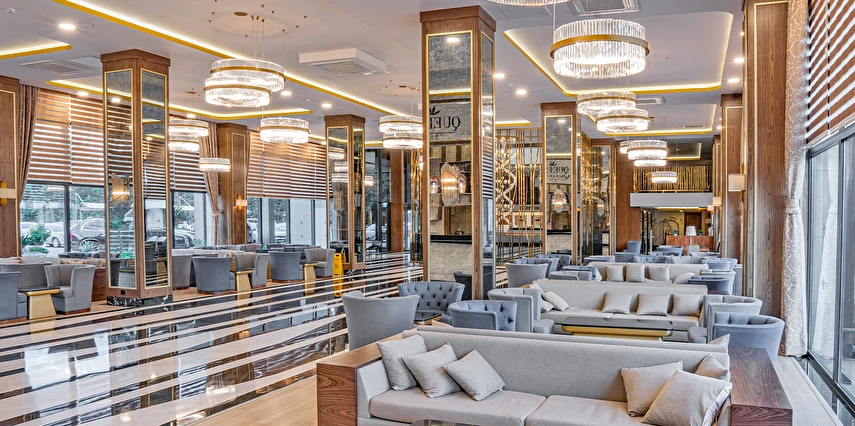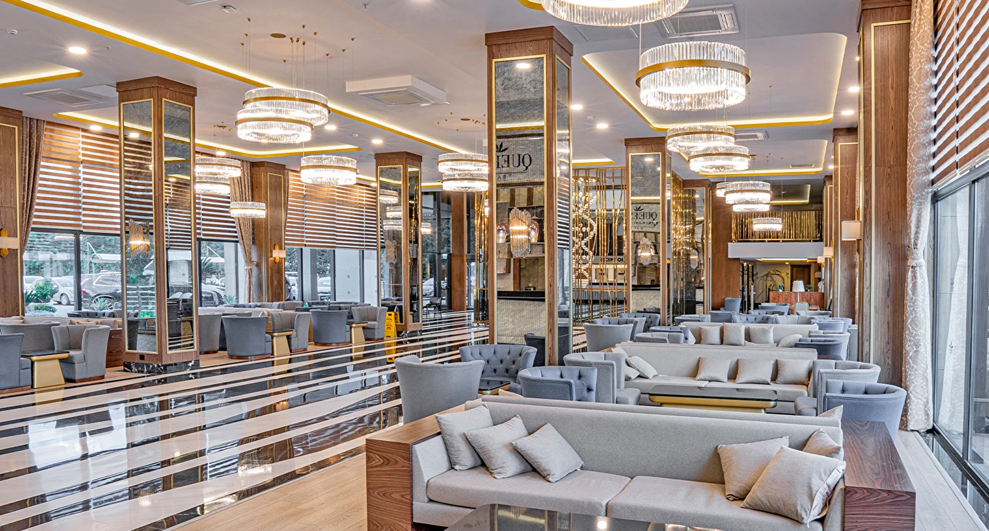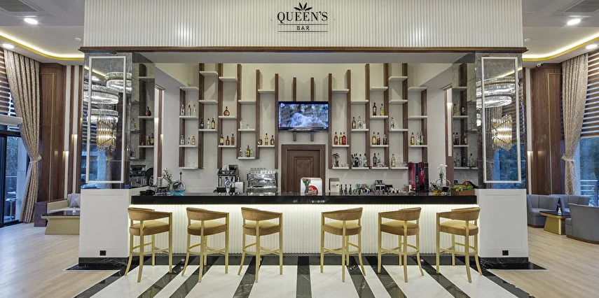 Queen’s Lobby Bar (24 saat) (Sıcak ve soğuk soft içecekler, konsept dahili yerli ve bazı yabancı alkol içkiler)