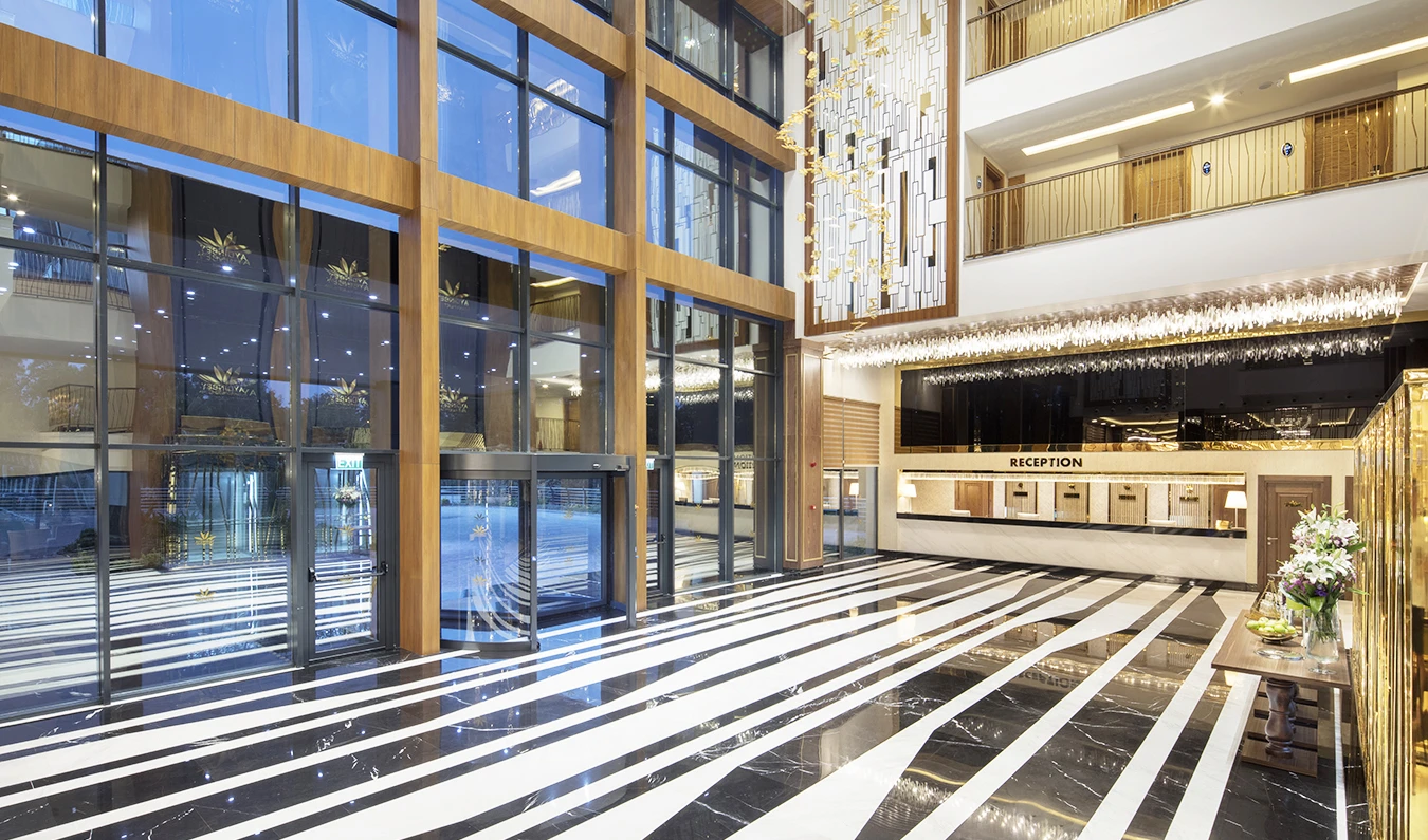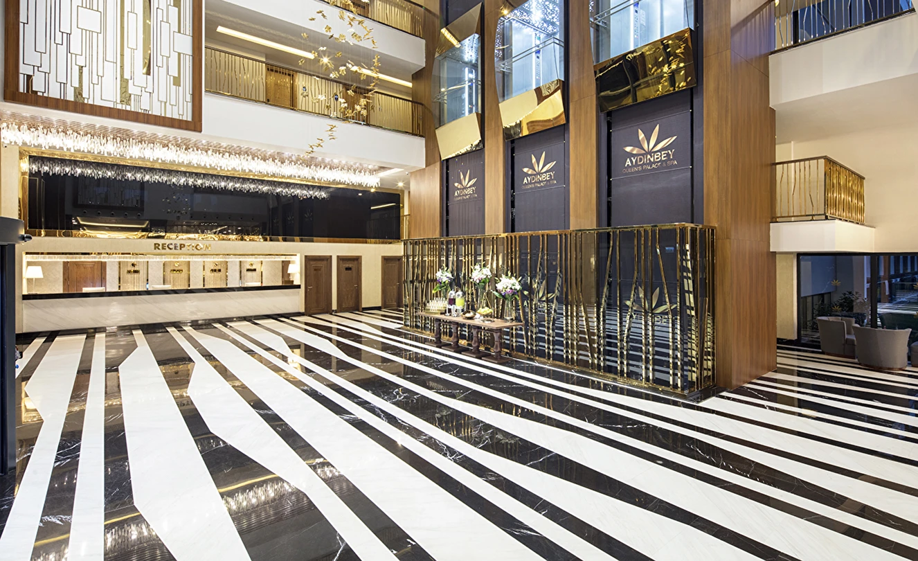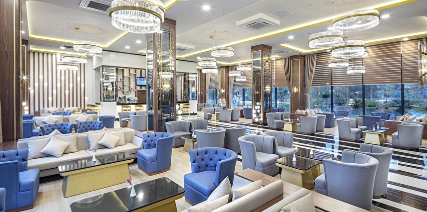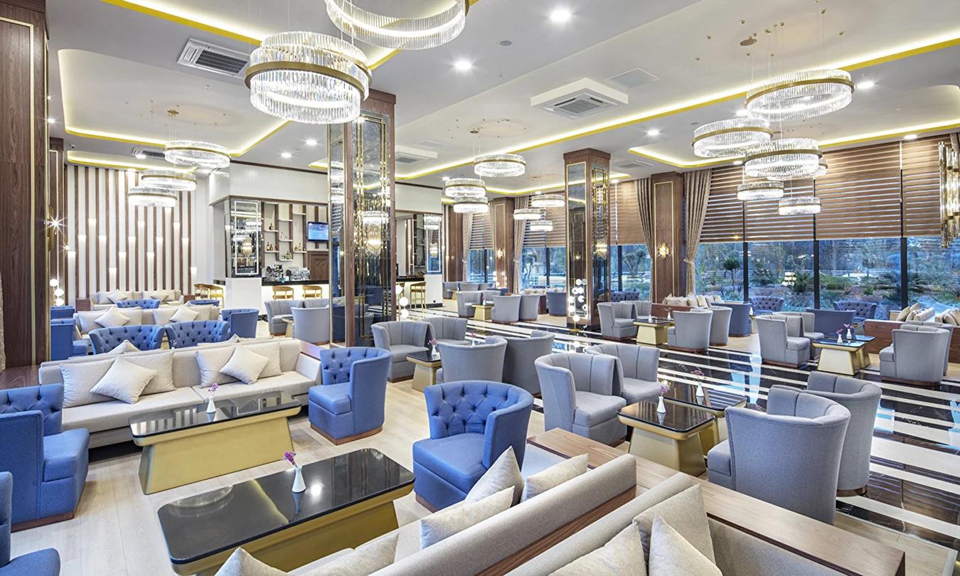 Queen’s Lobby Bar (24 saat) (Sıcak ve soğuk soft içecekler, konsept dahili yerli ve bazı yabancı alkol içkiler)