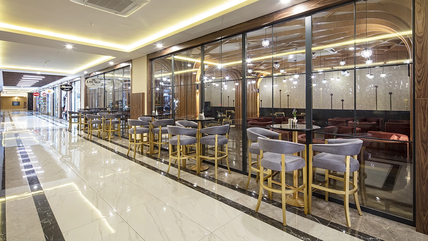 Lounge Bar (12:00 ile 00:00 saatleri arasında) (Sıcak ve soğuk soft içecekler, konsept dahili yerli ve bazı yabancı alkol içkiler)