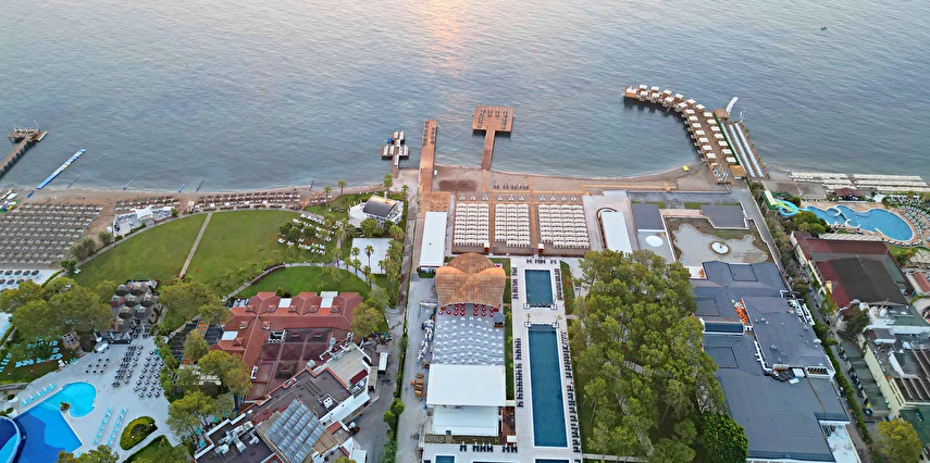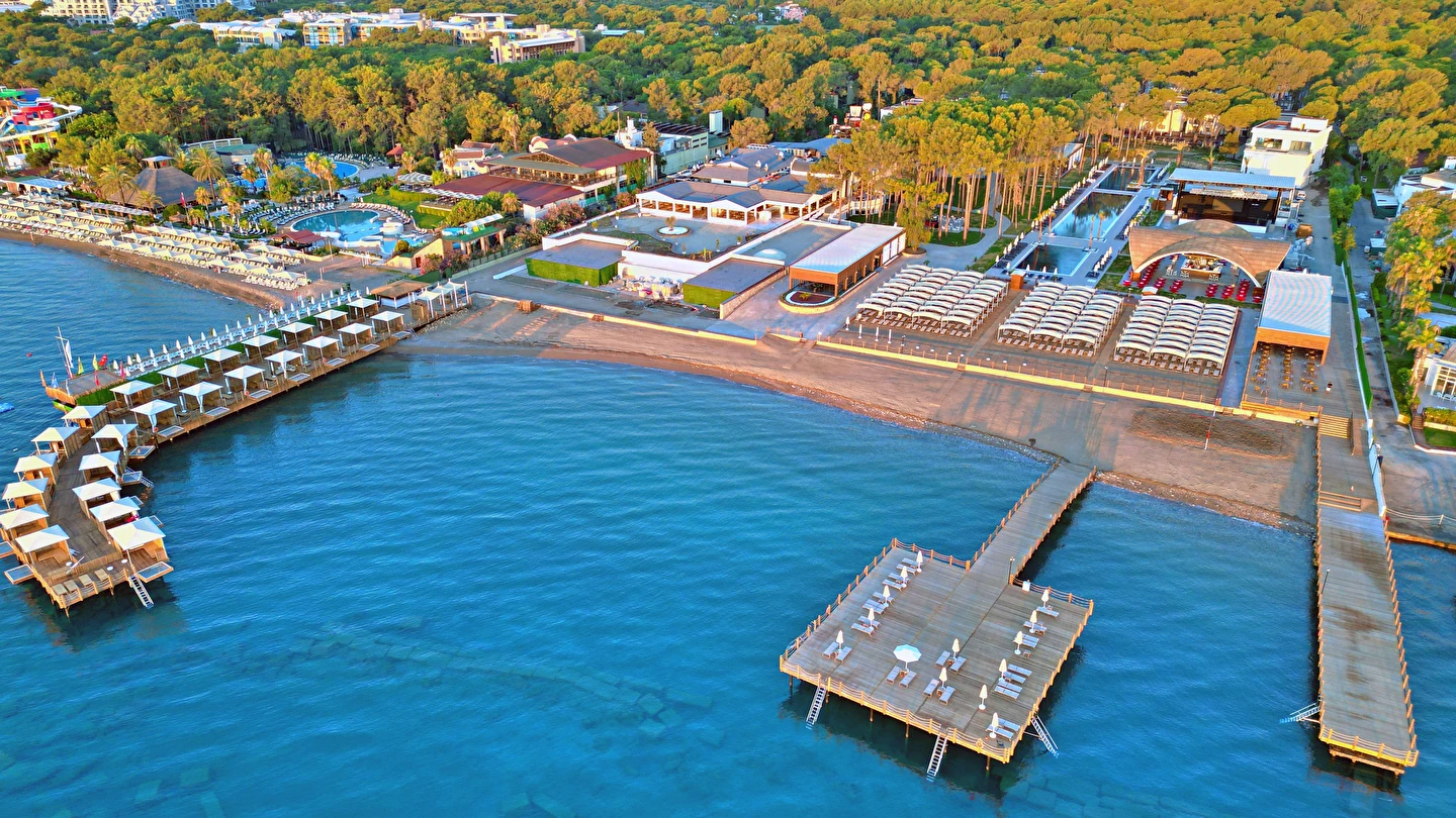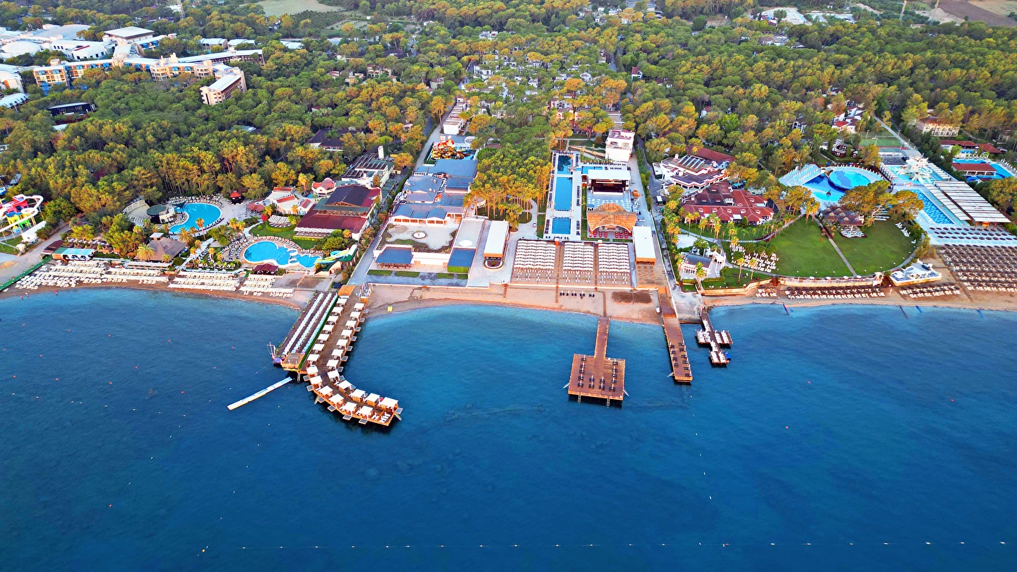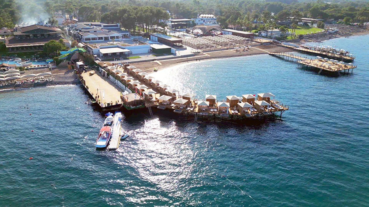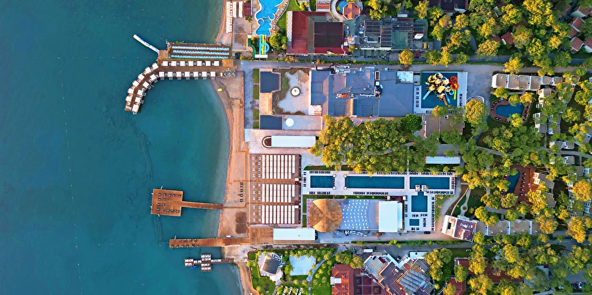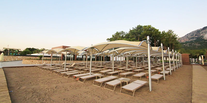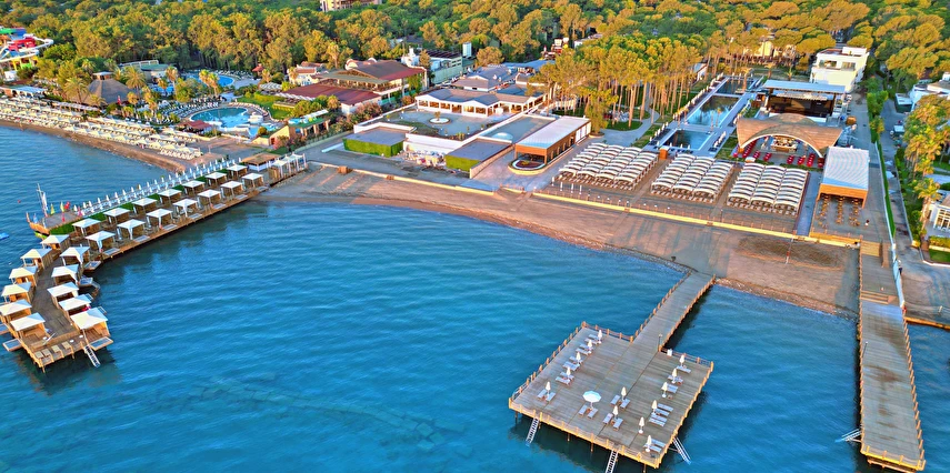 Tesisin 170 metre uzunluğunda kum - çakıl plaj ve sahilde 3 iskele, Siu su parkı (8 kaydıraklı) ve toplam 9 adet tatlı su yüzme havuzu bulunmaktadır.