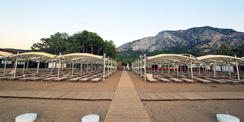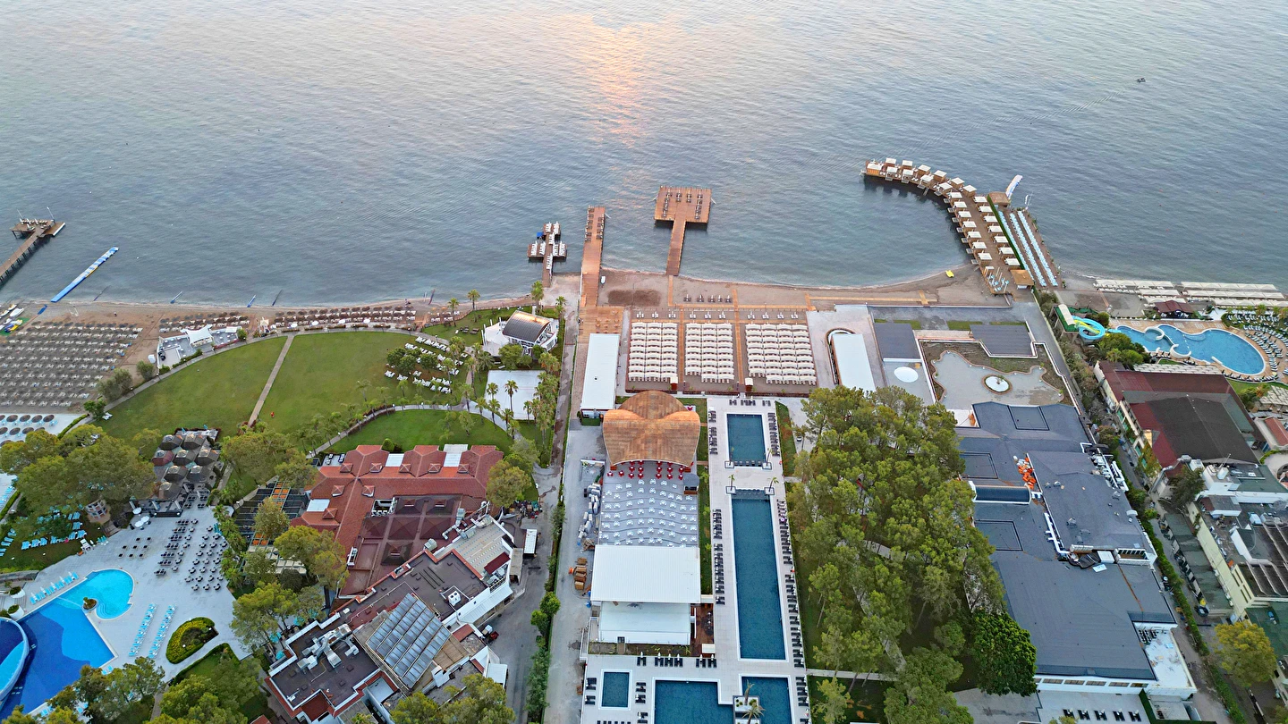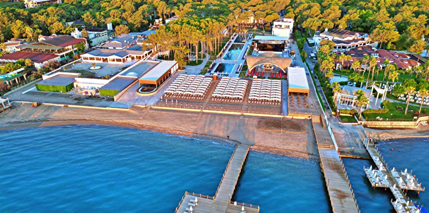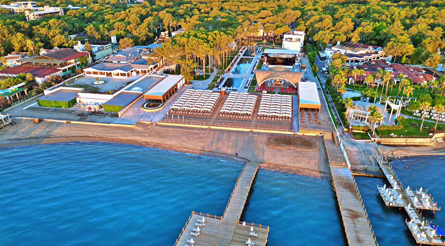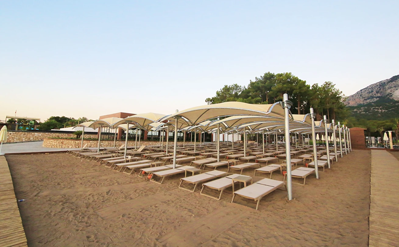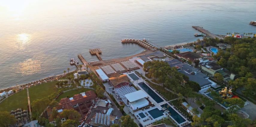 Tesisin 170 metre uzunluğunda kum - çakıl plaj ve sahilde 3 iskele, Siu su parkı (8 kaydıraklı) ve toplam 9 adet tatlı su yüzme havuzu bulunmaktadır.