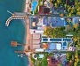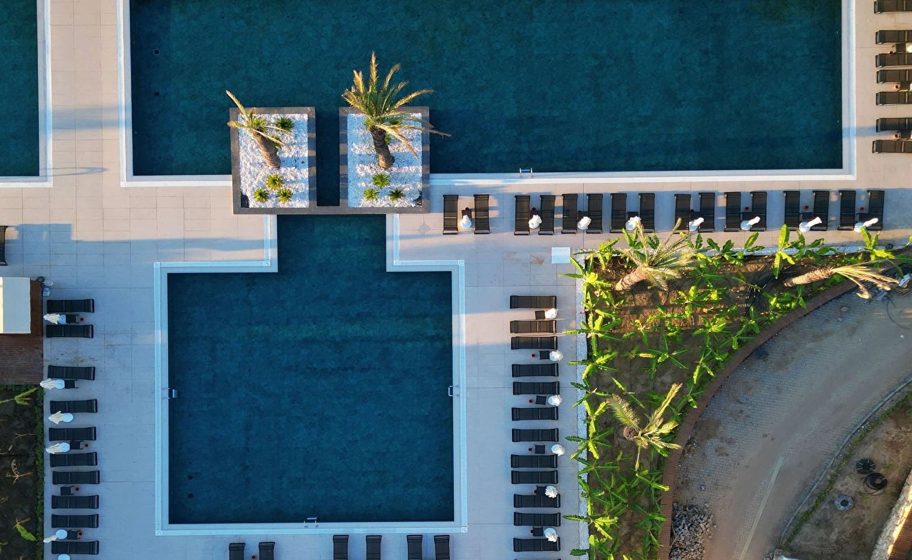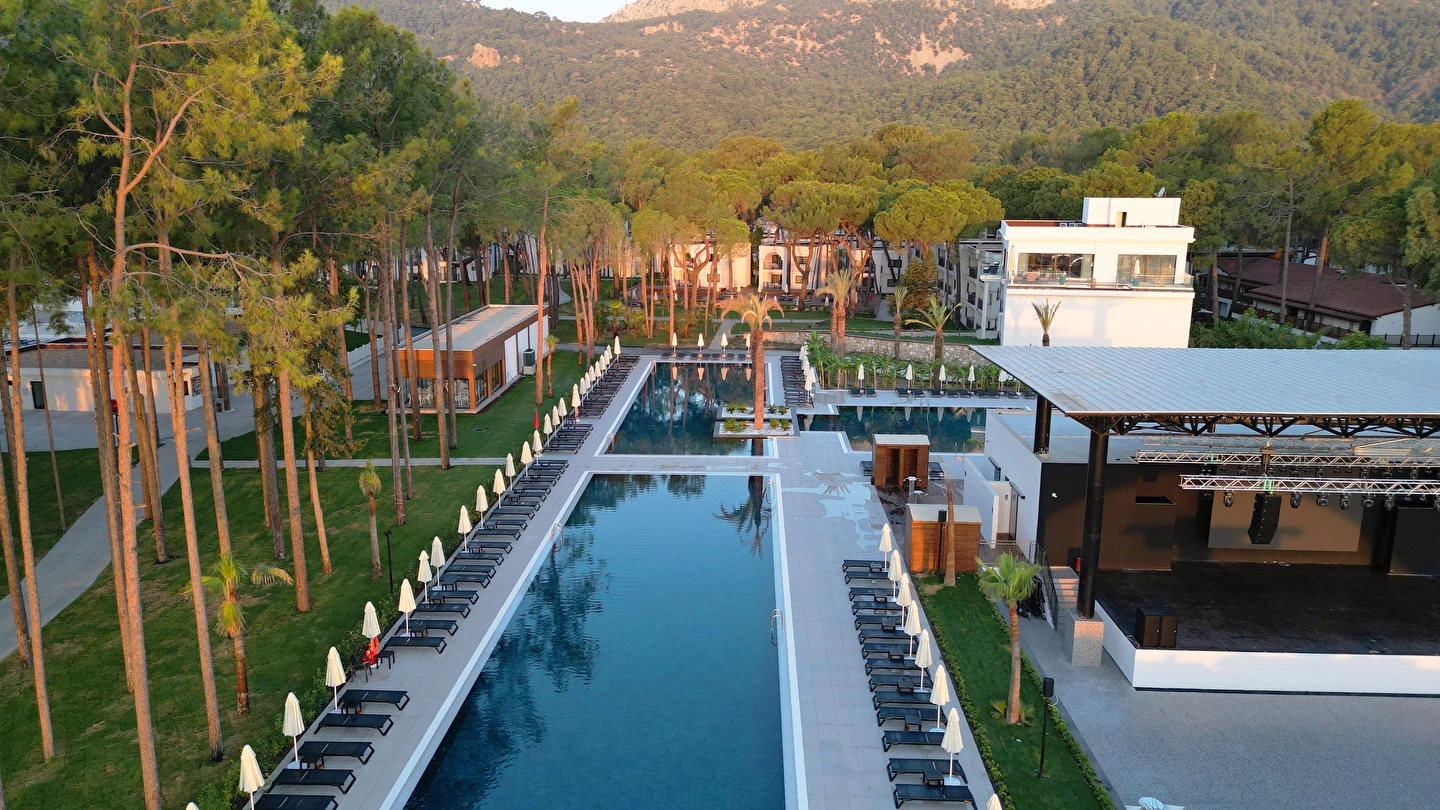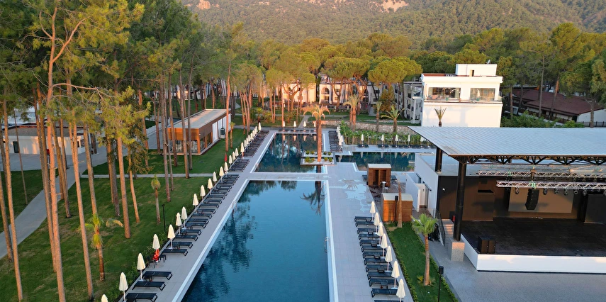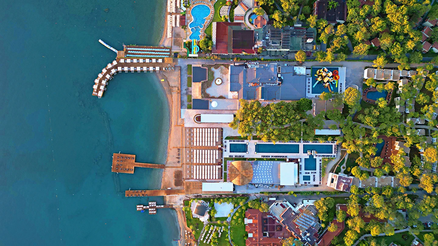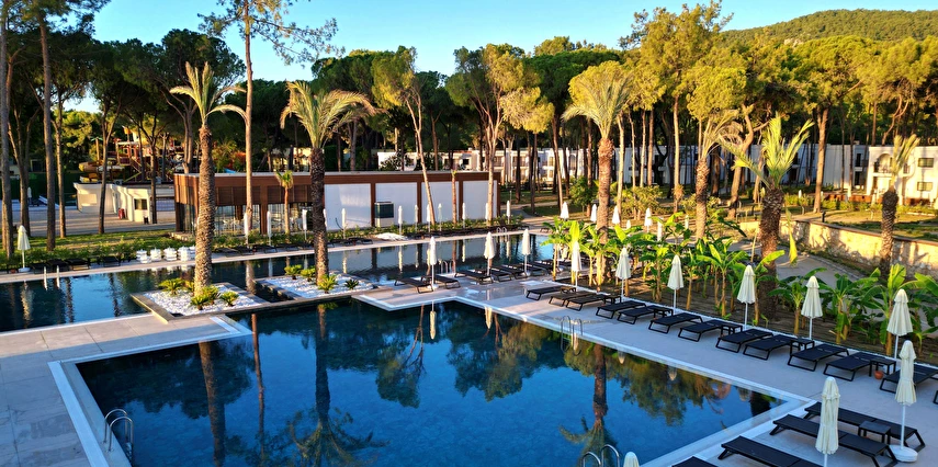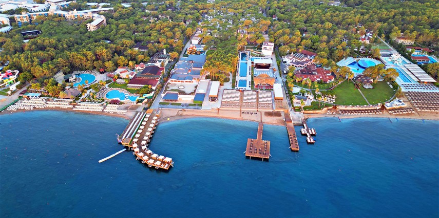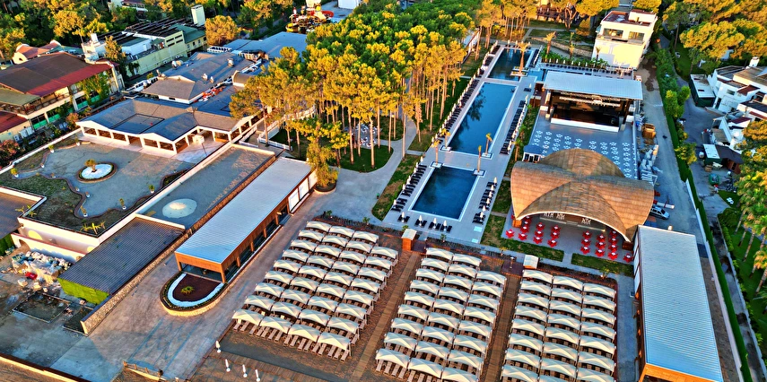 Tesisin 170 metre uzunluğunda kum - çakıl plaj ve sahilde 3 iskele, Siu su parkı (8 kaydıraklı) ve toplam 9 adet tatlı su yüzme havuzu bulunmaktadır.