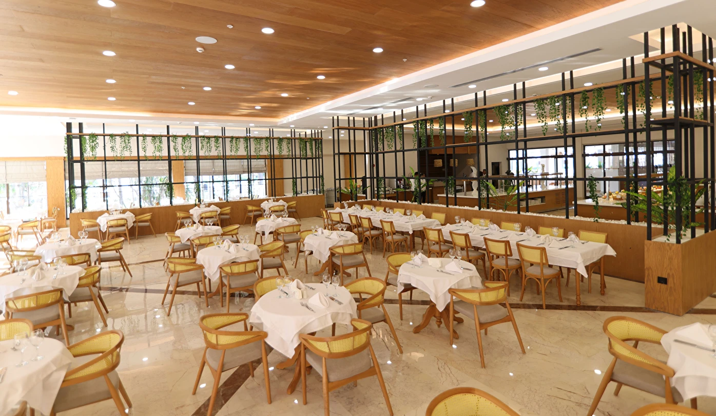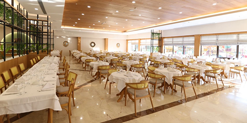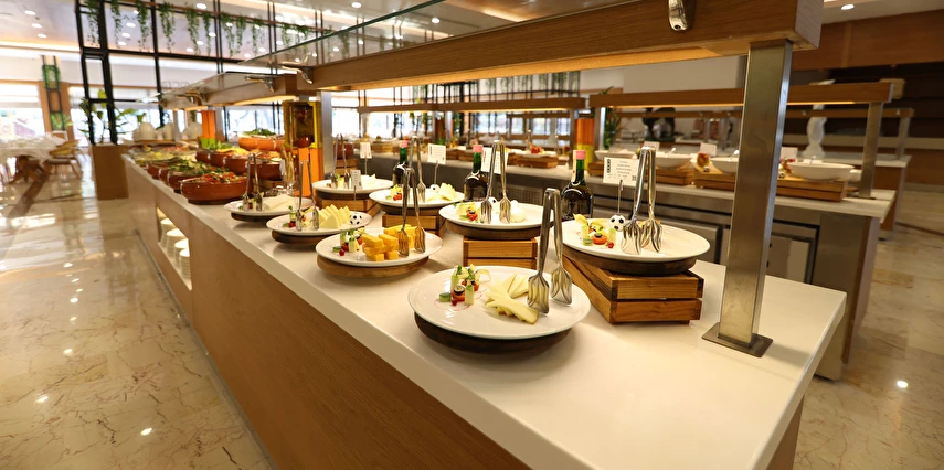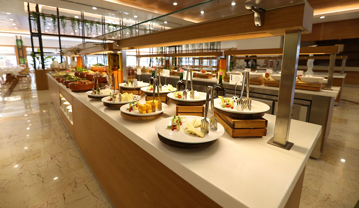 Kahvaltı, öğle, akşam yemeği ve gece büfesi açık büfedir, yerli alkollü & alkolsüz içecekler ve bazı ithal alkollü içecekler 24 saat ücretsizdir.