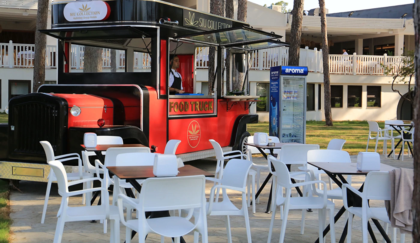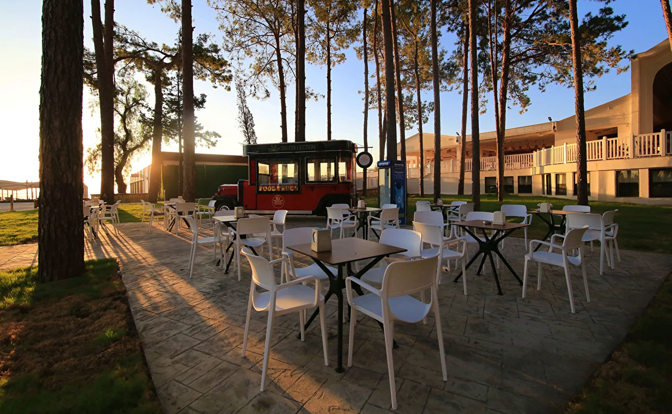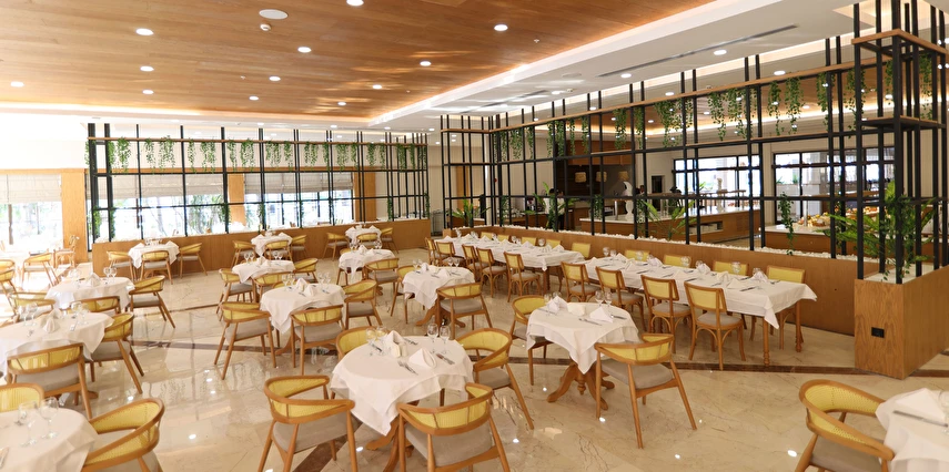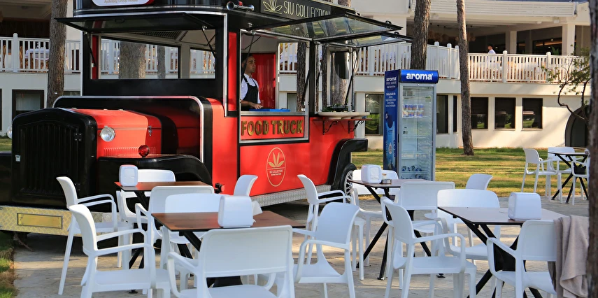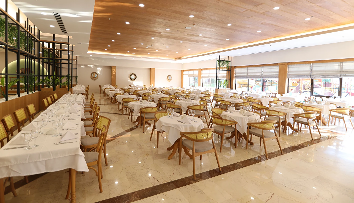Kahvaltı, öğle, akşam yemeği ve gece büfesi açık büfedir, yerli alkollü & alkolsüz içecekler ve bazı ithal alkollü içecekler 24 saat ücretsizdir.