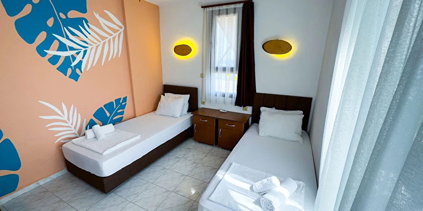Tüm odalarımızda su ısıtıcısı, saç kurutma makinesi, havlu, sıvı sabun, şampuan, 24 saat sıcak su ve ücretsiz Wi-Fi gibi temel olanaklar mevcuttur. Odalarımızın tamamı dışarı bakmakta olup, ferah ve doğal ışık alan bir konfor sunmaktadır. Görsellerimiz gerçeği birebir yansıtmaktadır.