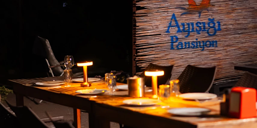 7/24 yemek ve içecek hizmetimizle misafirlerimizin her an ihtiyaçlarına cevap verebilmekteyiz. Hayvan dostu ve doğayla uyumlu anlayışımızla, Ayışığı Pansiyonu, ailenizle birlikte unutulmaz anılar biriktirebileceğiniz huzurlu bir tatil ortamı sunmaktadır