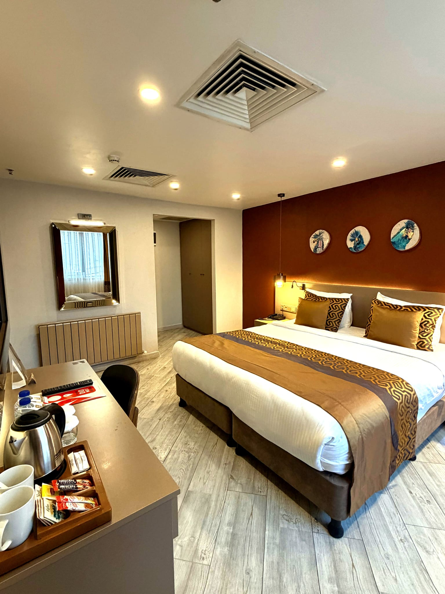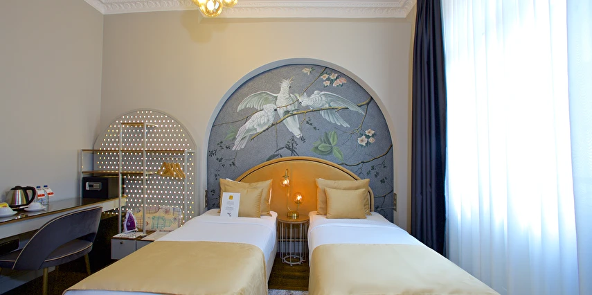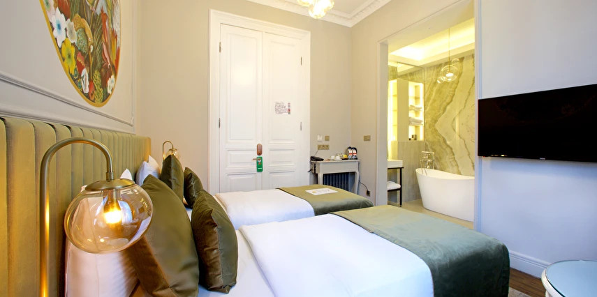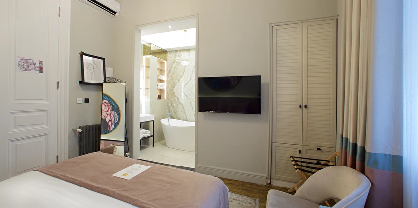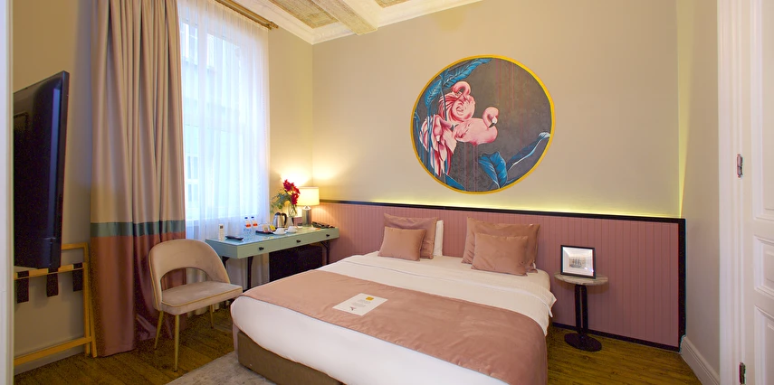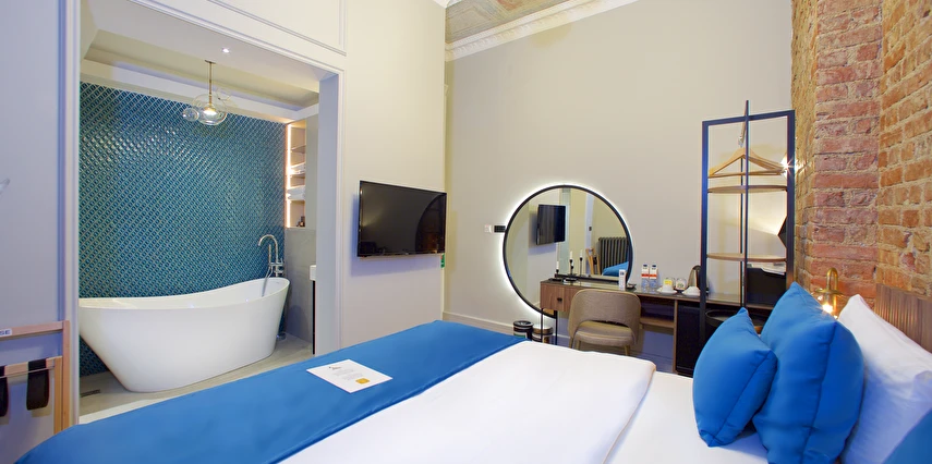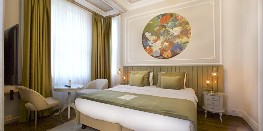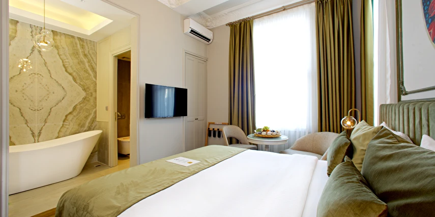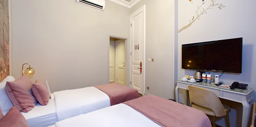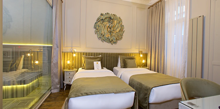 Daha Fazla GösterYenilenmiş 100 yıllık tarihi bir binada yer alan Ayramin Exclusive Hotel Special Category, hareketli İstiklal Caddesi'ne sadece 150 metre, Taksim Meydanı'na ise 650 metre mesafededir. Parke zeminli ve yüksek tavanlı odalar, modern mobilyalarla zevkli bir şekilde dekore edilmiştir. Her birimde klima, minibar, kasa, ısıtma ve düz ekran TV bulunmaktadır. Bazı odalarda özel balkon, hamam veya küvet bulunmaktadır.