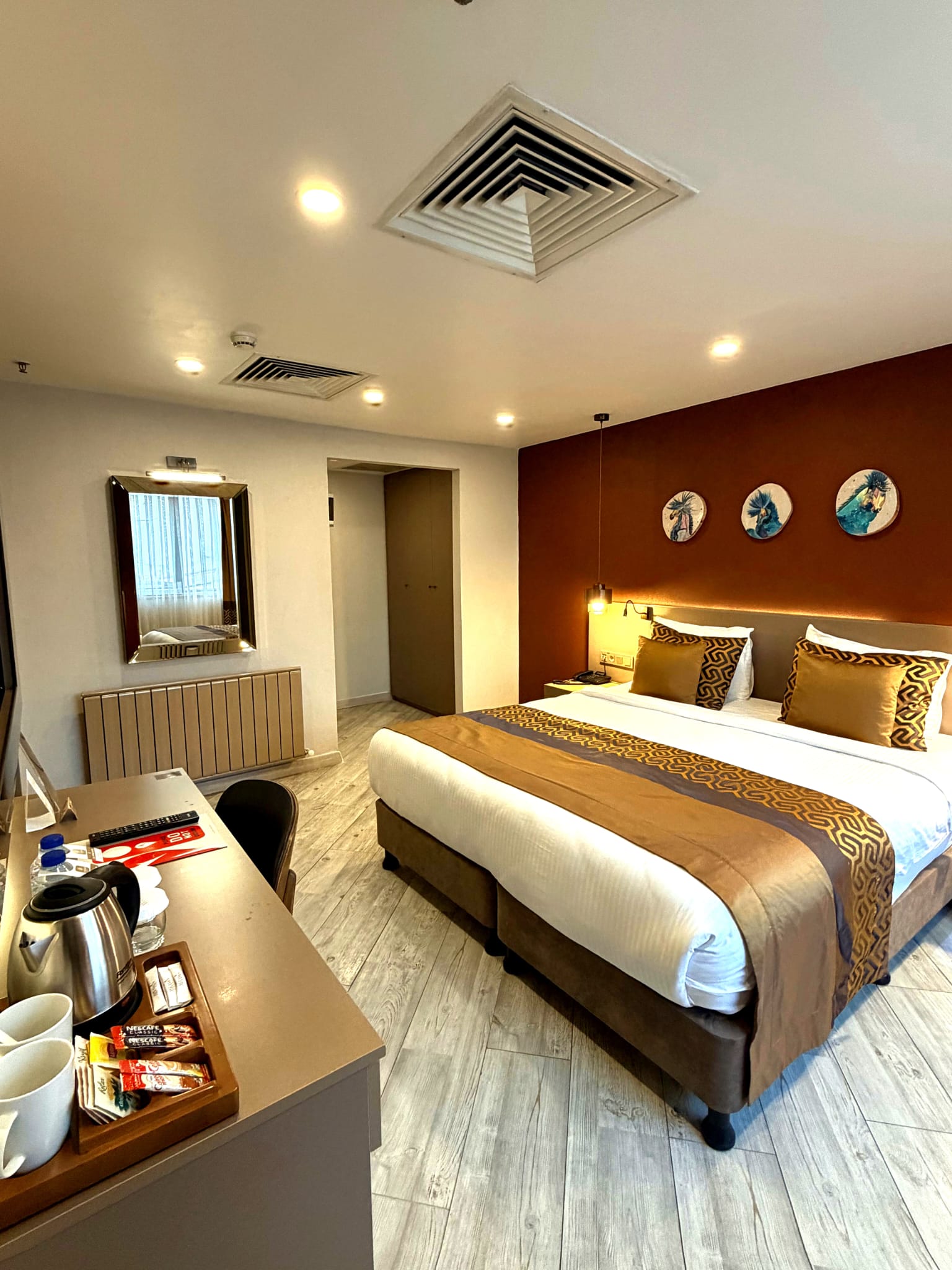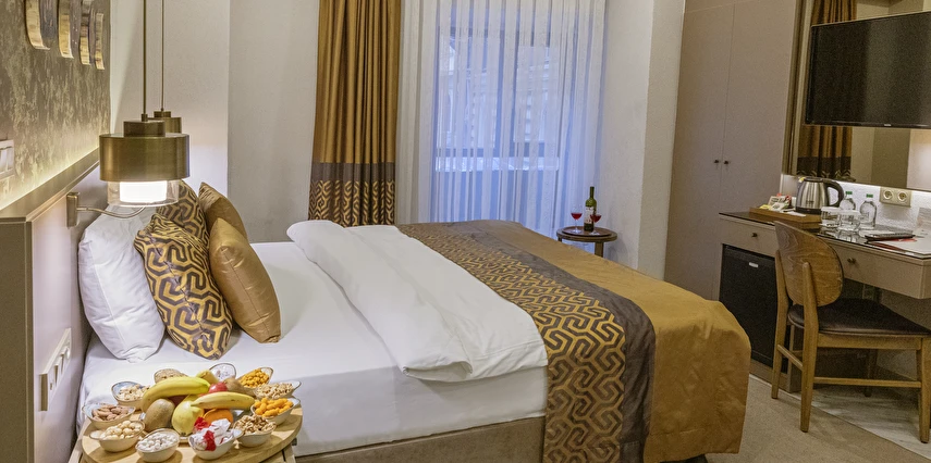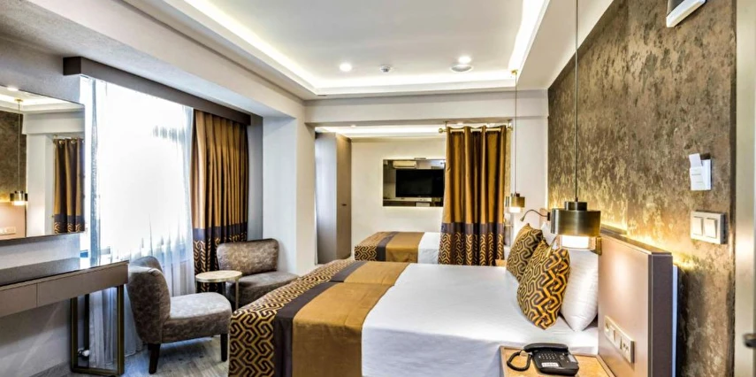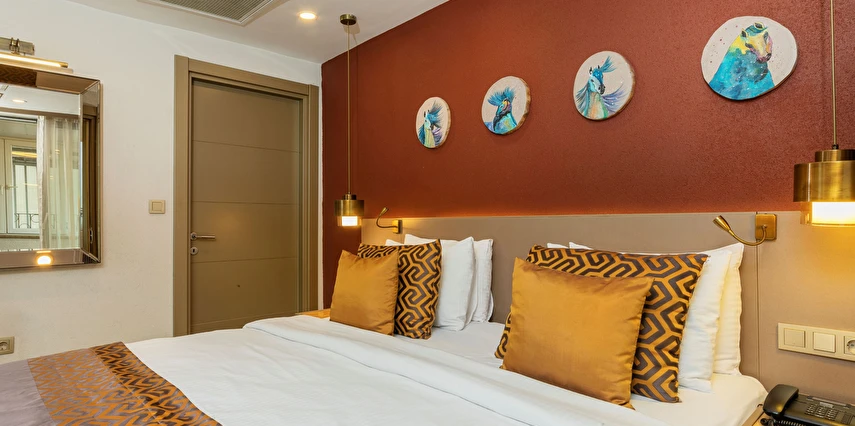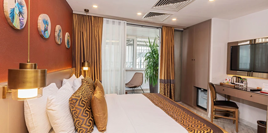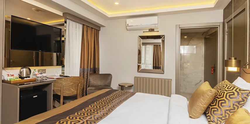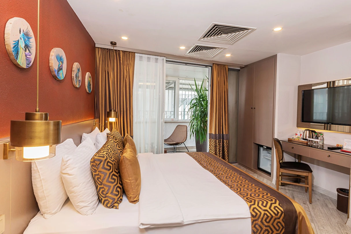 Yenilenmiş bir binada yer alan Ayramin Deluxe Hotel, hareketli İstiklal Caddesi'ne sadece 100 metre yani 1 dakikalık yürüme mesafesinde, Taksim Meydanı'na ise 600 metre uzaklıktadır. Parke zeminli odalar modern mobilyalarla zevkli bir şekilde dekore edilmiştir. Her birimde klima, minibar, kasa, ısıtma ve düz ekran TV bulunmaktadır. Bazı odalarda özel balkon, hamam veya jakuzi bulunmaktadır. Geniş odalarımız, süitlerimiz, aile odalarımız ve bağlantılı odalarımızla ailelere konforlu bir konaklama imkanı sunuyoruz. Günün yorgunluğunu atabileceğiniz, otelimizin ortak alanları olan bahçe ve şömine odamızda en güzel atmosferin keyfini çıkarın.