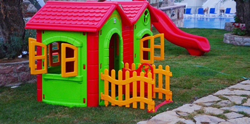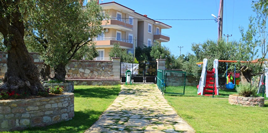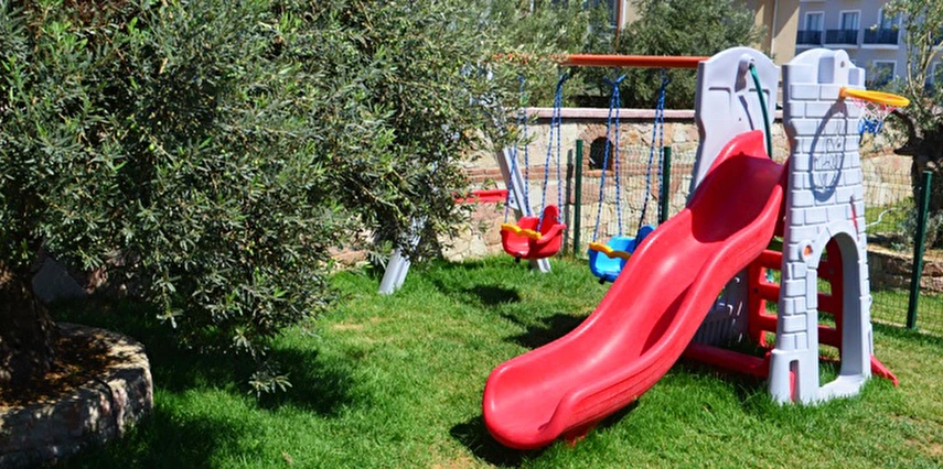 Tesisin bahçesinde dinlenme alanları, teras alanı ve oyun parkı gibi açık alanlar vardır.
