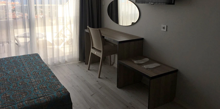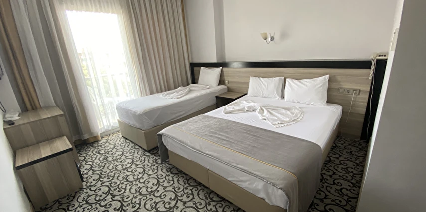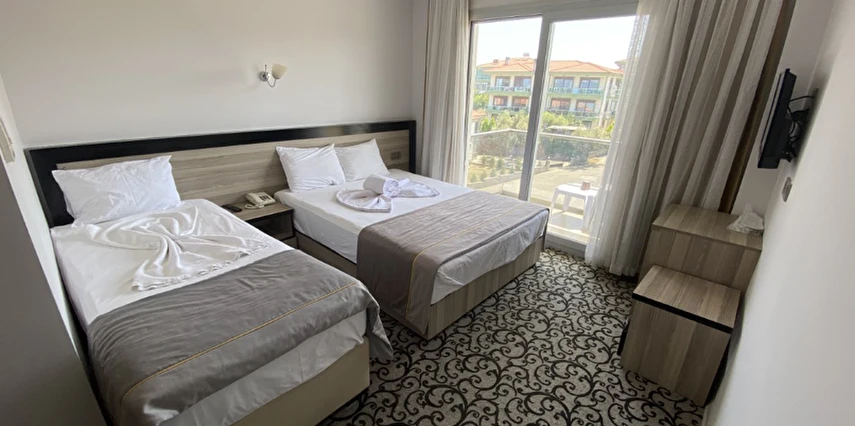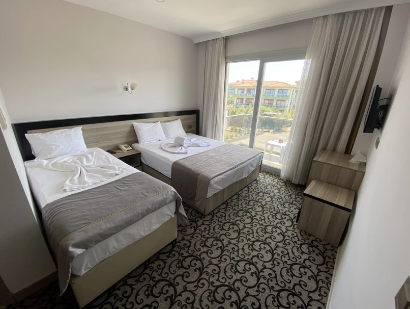 “Fırsat Oda – Kara Manzaralı”, “Standart Oda – Şehir Manzaralı” ve “Standart Oda – Yandan Deniz / Havuz Manzaralı” gibi oda tipleri bulunur.