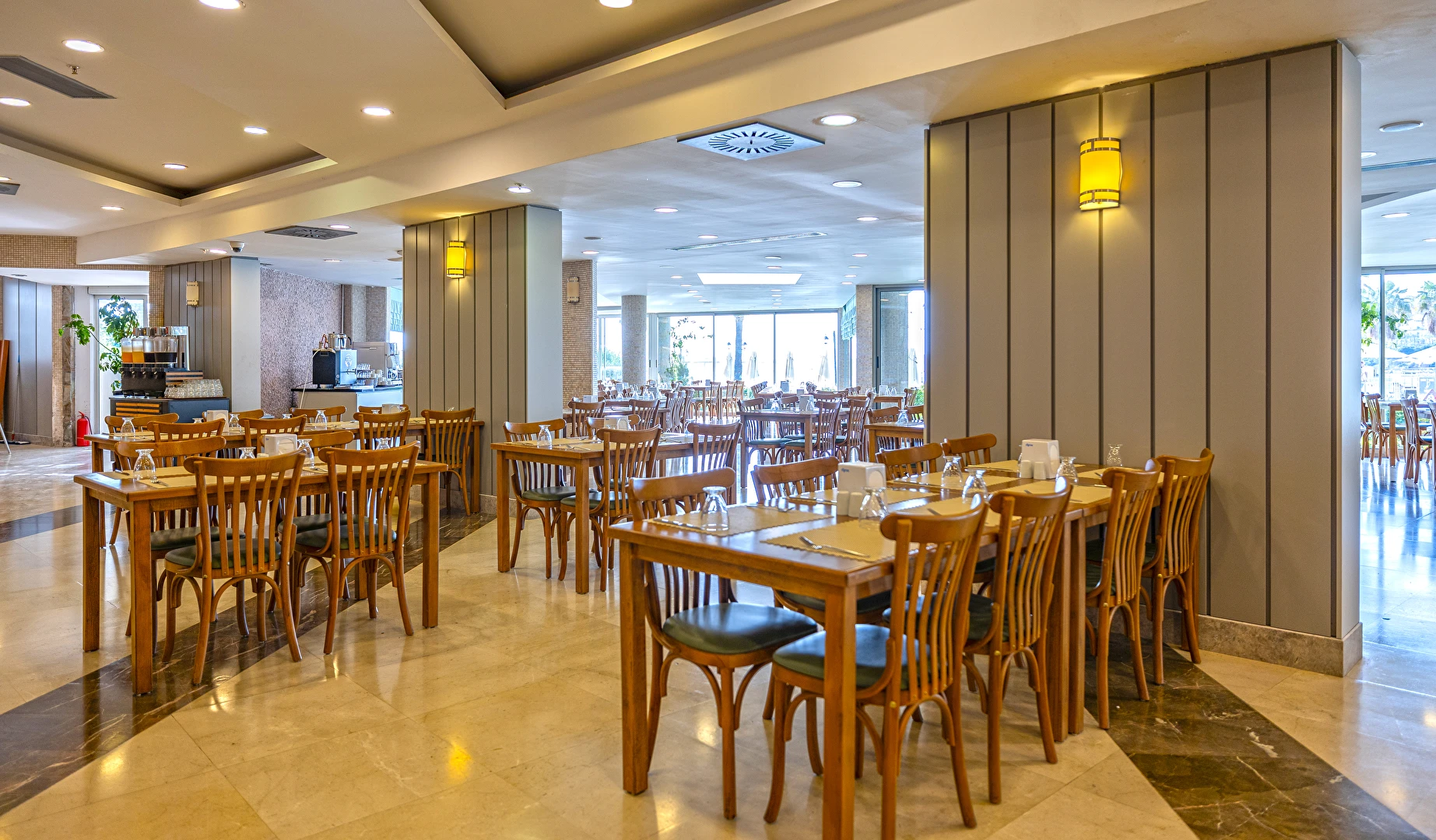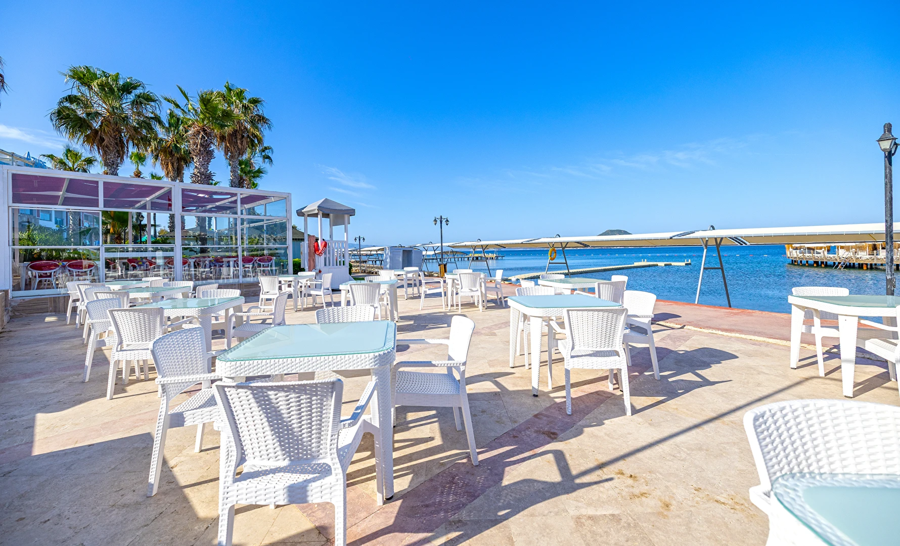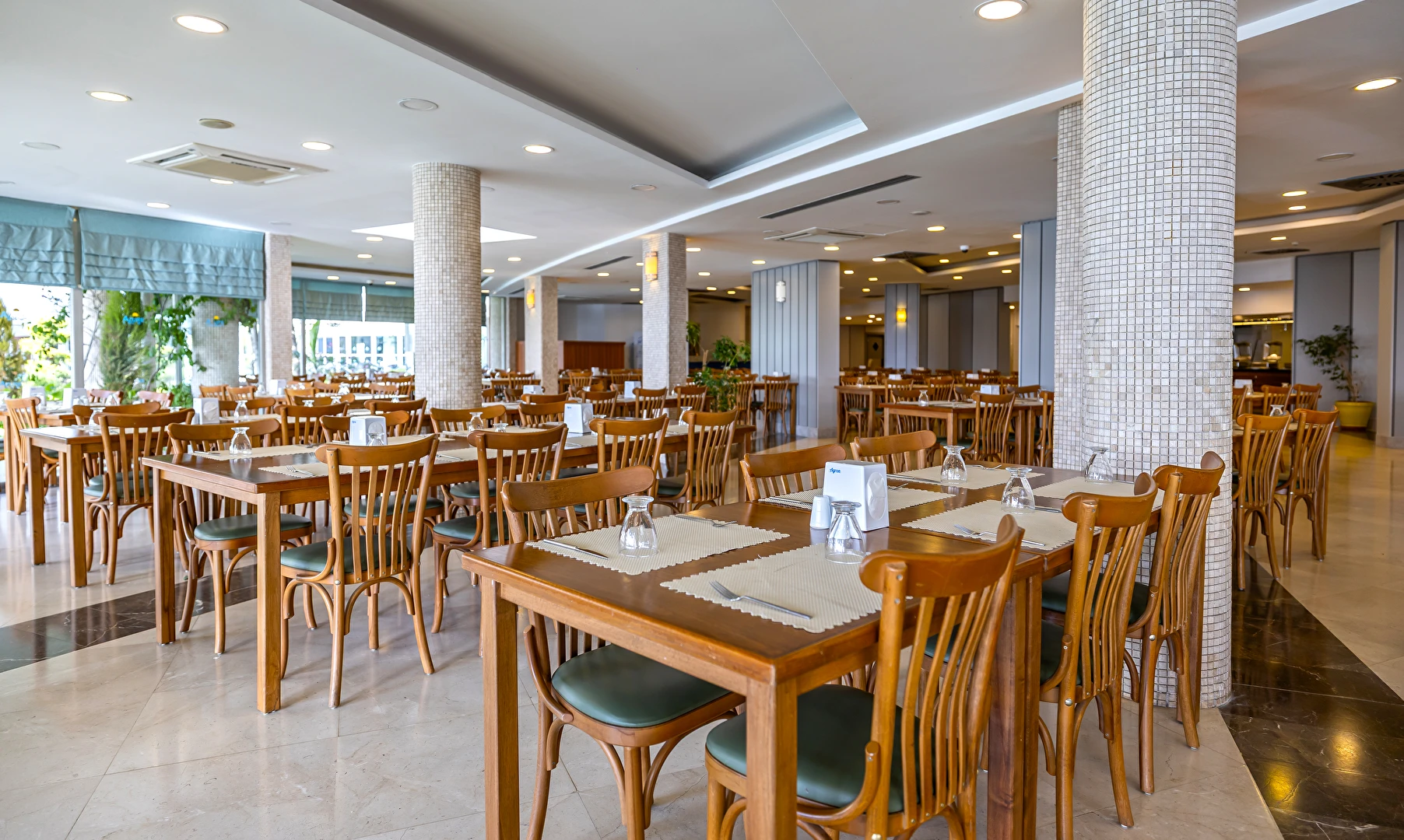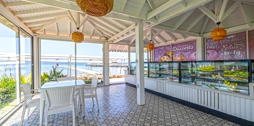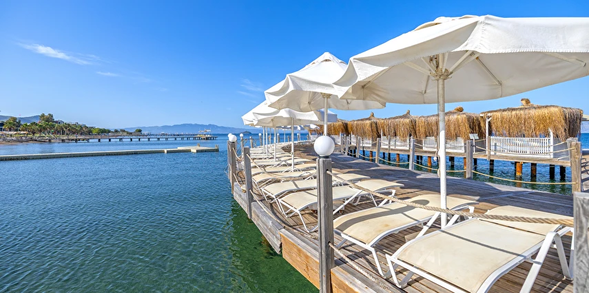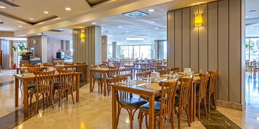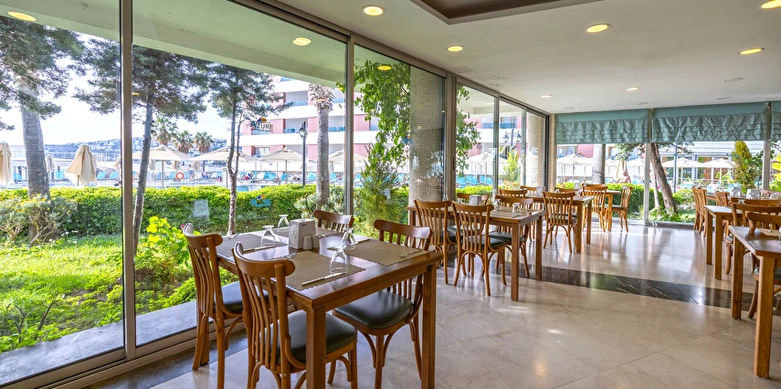 Balık ve Türk mutfakları ile haftanın 6 günü hizmet vermekte olup, 24 saat önceden rezervasyon yapılması gerekmektedir. A’ La Carte Restaurantlar’ dan, minimum 4 gece konaklayan Misafirlerimiz 1 defa ücretsiz olarak yararlanabilmektedir. Bazı yabancı ve yerli alkollü içecekler (Rakı, Votka, Bira , Cin , Tekilla, Brandy, Likör çeşitleri, Kırmızı ve Beyaz şarap, Whisky vb.) / Soft İçecekler: Meyve suları, Coca Cola, Coca Cola Light, Fanta, Sprite, Soda, Tonik, Ayran, pet şişe su / Sıcak İçecekler : Kahve çeşitleri, Türk Kahvesi, Demleme Çay, Poşet Çay çeşitleri (demlenerek servis edilir) konsepte dahildir. Konsept dışındaki import içecekler, taze sıkılmış meyve suları, barlardan şişe olarak alınan tüm içecekler, kutu içecekler, belirli saatlerde iskele, sahil ve havuz başında çeşitli yiyecek ve içecek ikramları ücretlidir. Türk kahvesi ücretsizdir. Tesiste Diyet Köşesi, Vejetaryen Köşesi ve Çocuk Büfesi Ana Restoranda öğle ve akşam yemekleri saatinde bulunmaktadır.