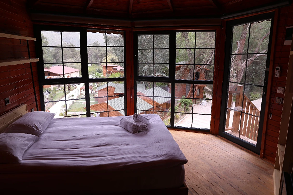 Bungalov & Tiny House Konsepti: Her biri özel girişe sahip, ferah tavanlı ve doğa manzaralı bağımsız konaklama birimleri.