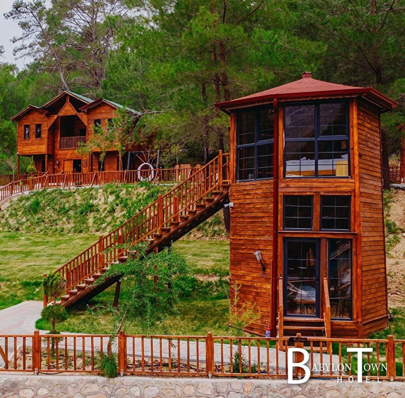 Babylontown, Antalya’nın saklı cenneti Olympos’ta, doğanın kalbinde yer alan, ismiyle müsemma bir "masal kasabası" konseptidir. Klasik otel anlayışından uzak, tamamen ahşap mimari ve sürdürülebilir turizm odağıyla tasarlanan bu tesis, misafirlerini modern dünyanın karmaşasından alıp huzurlu bir "Babil Bahçesi" atmosferine davet eder.