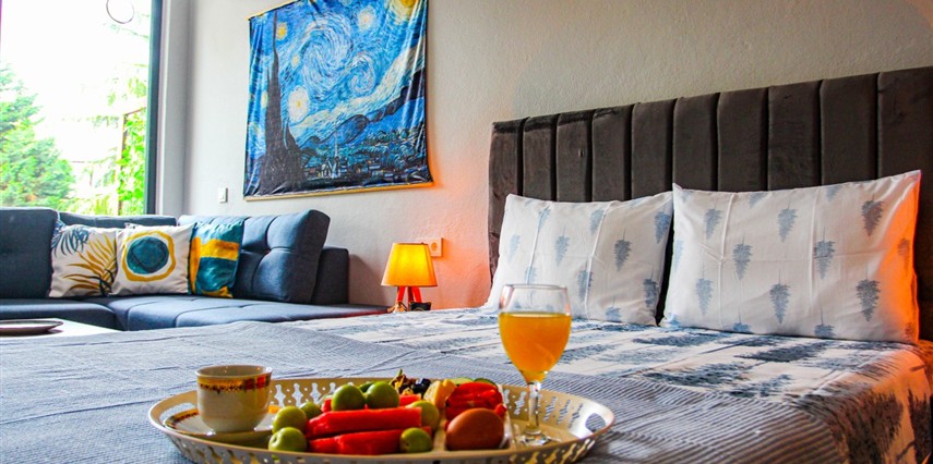Daha Fazla GösterBahçeli Concept Sapanca, Sapanca'nın doğal güzelliklerine bakan bir konumda yer alır. Toplamda 6 odaya sahip olan tesis, 4 adet 1+1 ve 2 adet 1+0 konseptinde odalarıyla hizmet sunar. Odalar, ünlü ressamların ve eserlerinin isimleriyle anılarak özelleştirilmiştir ve modern, konforlu bir tasarıma sahiptir.