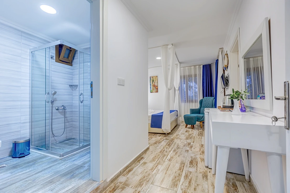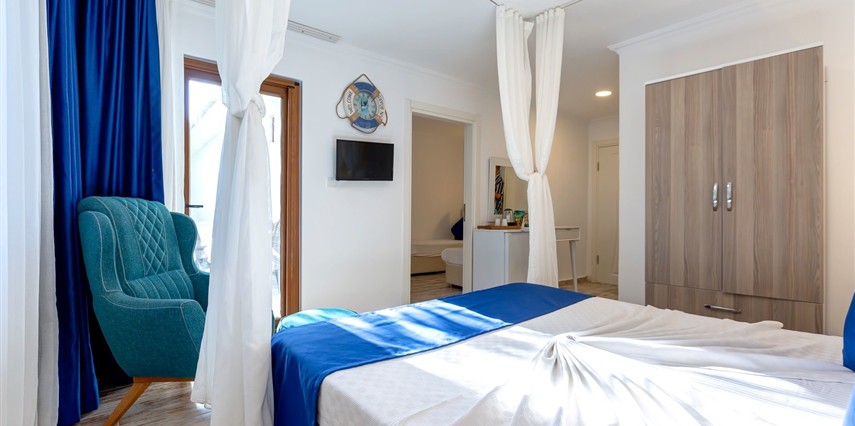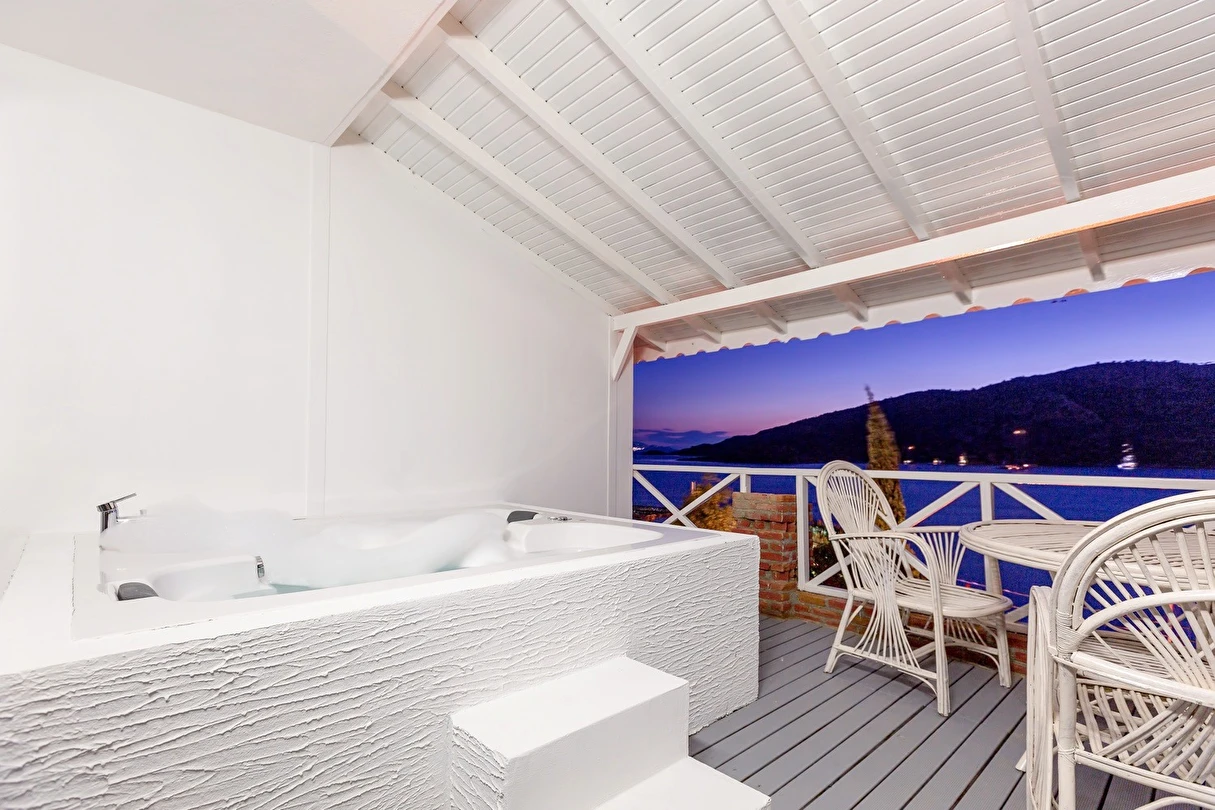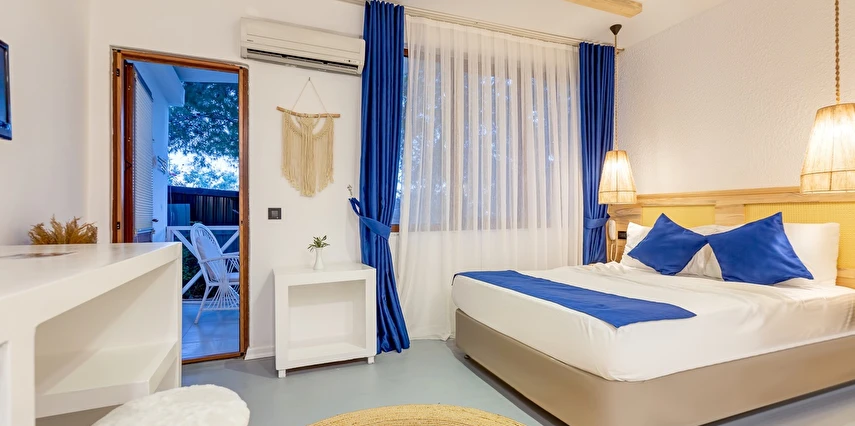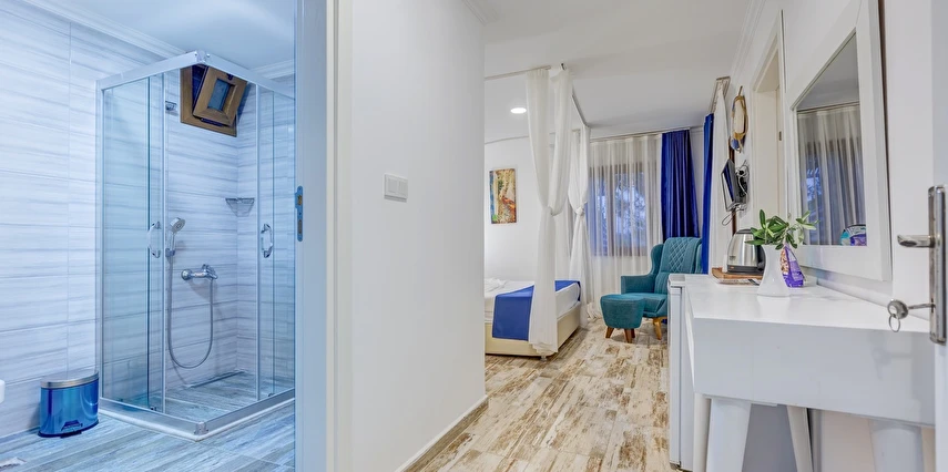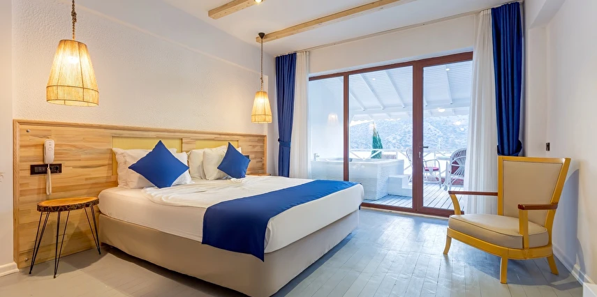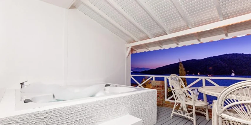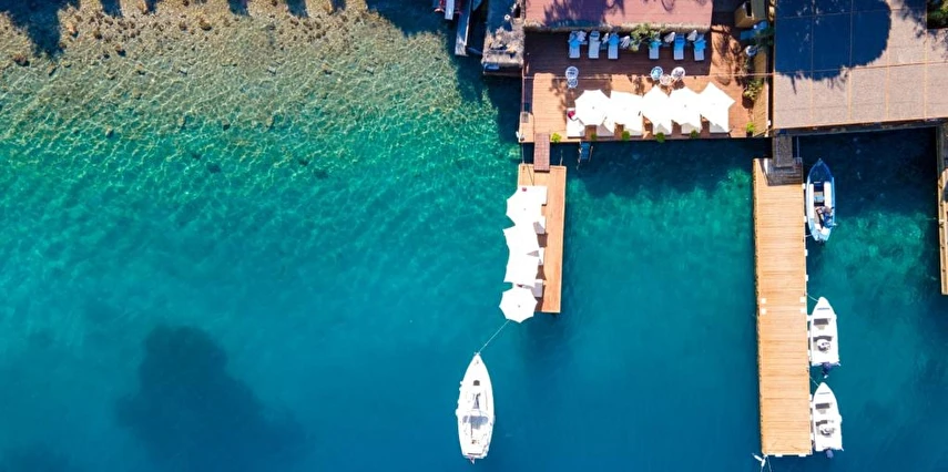 Arkada dağ, önü deniz, adeta saklanmış bir tatil mabedi… Öyle bir saklanmış ki doğa ananın koynuna, öyle yürüyüp gidemezsin… Ya kuş olup uçmalı buraya ulaşmak için, ya balık olup yüzmeli… Evet, otelimizin kara yolu yok. Ancak biz sizi, kendi deniz vasıtalarımız ile Bozburun Limanı’ndan memnuniyetle karşılıyoruz ve dünyada sayılı güzellikteki bir denizin üzerinde, cennetin ilk dakikalarını yaşamaya başlatıyoruz. Ayak bastığınız büyüleyici kıyı artık sizin için adeta okşarcasına yüzdüğünüz, tam üstünde yemek yediğiniz billur deniz de öyle… Kendinizin gibi hissedeceğiniz özel bir tesiste ve tabiat ananın şefkatli kollarındasınız artık. Unutulmayacak bu tatil sizin seçiminiz. Otelimiz 2012 yılında tamamlanmış olup, ilk merhabadan son hoşça kala kadar, konfor ve hoşnutluğunuz için tüm gerekenler en ince detayına kadar düşünülmüştür. Gündüz güneş ve deniz, gece yıldız ve yakamoz devamlı misafirlerimizdir. Gerçek sessizliği burada duyabilir, en güzel doğa seslerine burada doyabilirsiniz. Dokunulmazlık ulaşılmazlık, konfor, keyif ve lezzet, hepsi size dair Her bir odamız eşsiz manzaralı, her biri farklı ayrıcalıklarla donatılmış rahat ve tabiata uyumlu malzemelerle döşenmiştir. Bol çeşitli taze ege balıkları ve otları ile her çeşit zevke hitap edebilecek seçenekleriyle restoranımızdan lezzet taşmaktadır. Gecenin tonuna kaliteli hizmet ile eşilik edecek olan benzersiz manzarasıyla teras barımız, işimi hobi olarak görüp keyifle yaptığından, yüzünde gülümse eksik olmayan eğitimli personelimizle hizmete hazırıdır Arkada dağ, önü deniz, adeta saklanmış bir tatil mabedi… Öyle bir saklanmış ki doğa ananın koynuna, öyle yürüyüp gidemezsin… Ya kuş olup uçmalı buraya ulaşmak için, ya balık olup yüzmeli… Evet, otelimizin kara yolu yok. Ancak biz sizi, kendi deniz vasıtalarımız ile Bozburun Limanı’ndan memnuniyetle karşılıyoruz ve dünyada sayılı güzellikteki bir denizin üzerinde, cennetin ilk dakikalarını yaşamaya başlatıyoruz. Ayak bastığınız büyüleyici kıyı artık sizin için adeta okşarcasına yüzdüğünüz, tam üstünde yemek yediğiniz billur deniz de öyle… Kendinizin gibi hissedeceğiniz özel bir tesiste ve tabiat ananın şefkatli kollarındasınız artık. Unutulmayacak bu tatil sizin seçiminiz. Otelimiz 2012 yılında tamamlanmış olup, ilk merhabadan son hoşça kala kadar, konfor ve hoşnutluğunuz için tüm gerekenler en ince detayına kadar düşünülmüştür. Gündüz güneş ve deniz, gece yıldız ve yakamoz devamlı misafirlerimizdir. Gerçek sessizliği burada duyabilir, en güzel doğa seslerine burada doyabilirsiniz. Dokunulmazlık ulaşılmazlık, konfor, keyif ve lezzet, hepsi size dair Her bir odamız eşsiz manzaralı, her biri farklı ayrıcalıklarla donatılmış rahat ve tabiata uyumlu malzemelerle döşenmiştir. Bol çeşitli taze ege balıkları ve otları ile her çeşit zevke hitap edebilecek seçenekleriyle restoranımızdan lezzet taşmaktadır. Gecenin tonuna kaliteli hizmet ile eşilik edecek olan benzersiz manzarasıyla teras barımız, işimi hobi olarak görüp keyifle yaptığından, yüzünde gülümse eksik olmayan eğitimli personelimizle hizmete hazırıdır Marmaris’in en özel tatil beldesi Bozburun’da hizmet veren Baldan Suites, muhteşem manzarası ve sıcak atmosferi ile evinizin konforunu yaşatan bir tatilin kapılarını aralıyor. Tesis denize sıfır konumda yer alıyor.