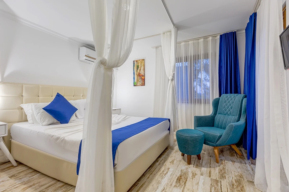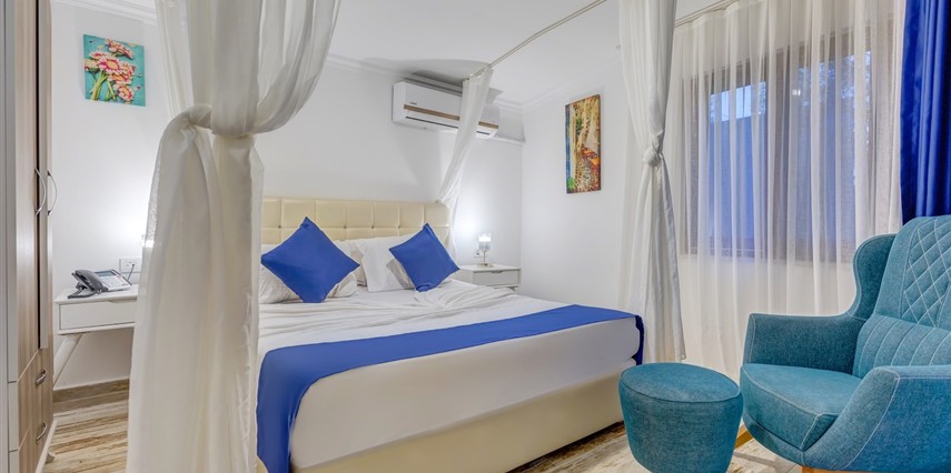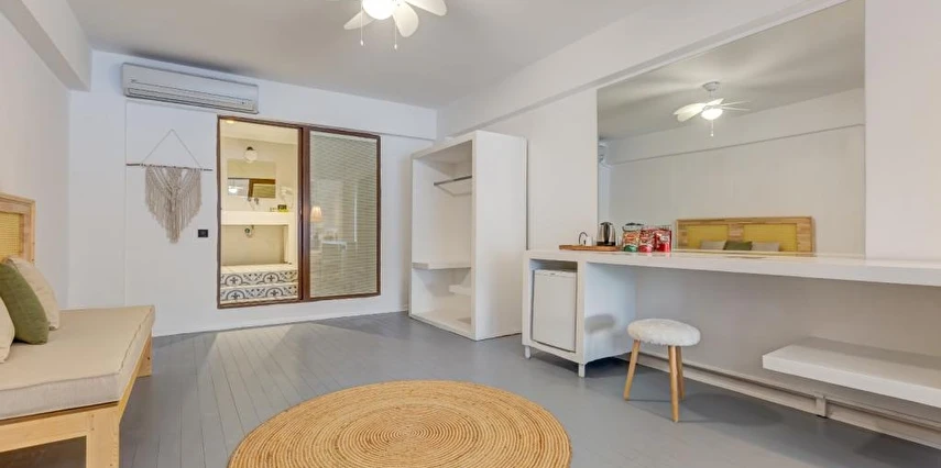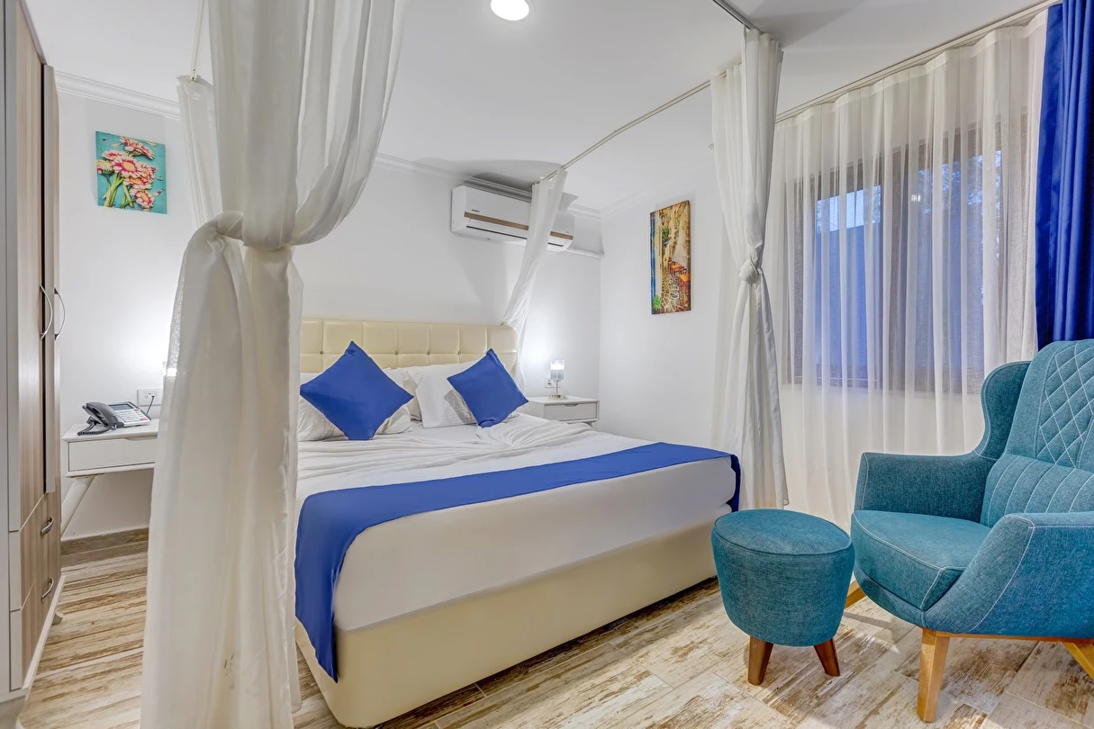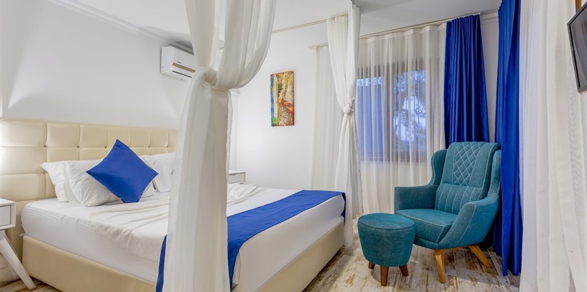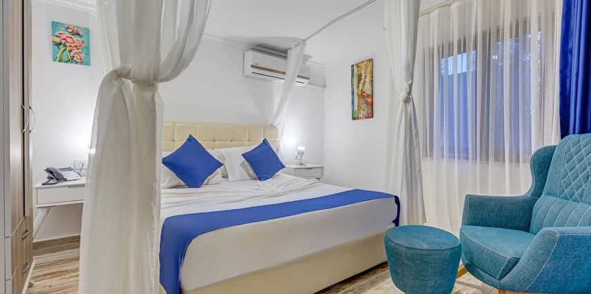Arkada dağ, önü deniz, adeta saklanmış bir tatil mabedi… Öyle bir saklanmış ki doğa ananın koynuna, öyle yürüyüp gidemezsin… Ya kuş olup uçmalı buraya ulaşmak için, ya balık olup yüzmeli… Evet, otelimizin kara yolu yok. Ancak biz sizi, kendi deniz vasıtalarımız ile Bozburun Limanı’ndan memnuniyetle karşılıyoruz ve dünyada sayılı güzellikteki bir denizin üzerinde, cennetin ilk dakikalarını yaşamaya başlatıyoruz. Ayak bastığınız büyüleyici kıyı artık sizin için adeta okşarcasına yüzdüğünüz, tam üstünde yemek yediğiniz billur deniz de öyle… Kendinizin gibi hissedeceğiniz özel bir tesiste ve tabiat ananın şefkatli kollarındasınız artık. Unutulmayacak bu tatil sizin seçiminiz. Otelimiz 2012 yılında tamamlanmış olup, ilk merhabadan son hoşça kala kadar, konfor ve hoşnutluğunuz için tüm gerekenler en ince detayına kadar düşünülmüştür. Gündüz güneş ve deniz, gece yıldız ve yakamoz devamlı misafirlerimizdir. Gerçek sessizliği burada duyabilir, en güzel doğa seslerine burada doyabilirsiniz. Dokunulmazlık ulaşılmazlık, konfor, keyif ve lezzet, hepsi size dair Her bir odamız eşsiz manzaralı, her biri farklı ayrıcalıklarla donatılmış rahat ve tabiata uyumlu malzemelerle döşenmiştir. Bol çeşitli taze ege balıkları ve otları ile her çeşit zevke hitap edebilecek seçenekleriyle restoranımızdan lezzet taşmaktadır. Gecenin tonuna kaliteli hizmet ile eşilik edecek olan benzersiz manzarasıyla teras barımız, işimi hobi olarak görüp keyifle yaptığından, yüzünde gülümse eksik olmayan eğitimli personelimizle hizmete hazırıdır Arkada dağ, önü deniz, adeta saklanmış bir tatil mabedi… Öyle bir saklanmış ki doğa ananın koynuna, öyle yürüyüp gidemezsin… Ya kuş olup uçmalı buraya ulaşmak için, ya balık olup yüzmeli… Evet, otelimizin kara yolu yok. Ancak biz sizi, kendi deniz vasıtalarımız ile Bozburun Limanı’ndan memnuniyetle karşılıyoruz ve dünyada sayılı güzellikteki bir denizin üzerinde, cennetin ilk dakikalarını yaşamaya başlatıyoruz. Ayak bastığınız büyüleyici kıyı artık sizin için adeta okşarcasına yüzdüğünüz, tam üstünde yemek yediğiniz billur deniz de öyle… Kendinizin gibi hissedeceğiniz özel bir tesiste ve tabiat ananın şefkatli kollarındasınız artık. Unutulmayacak bu tatil sizin seçiminiz. Otelimiz 2012 yılında tamamlanmış olup, ilk merhabadan son hoşça kala kadar, konfor ve hoşnutluğunuz için tüm gerekenler en ince detayına kadar düşünülmüştür. Gündüz güneş ve deniz, gece yıldız ve yakamoz devamlı misafirlerimizdir. Gerçek sessizliği burada duyabilir, en güzel doğa seslerine burada doyabilirsiniz. Dokunulmazlık ulaşılmazlık, konfor, keyif ve lezzet, hepsi size dair Her bir odamız eşsiz manzaralı, her biri farklı ayrıcalıklarla donatılmış rahat ve tabiata uyumlu malzemelerle döşenmiştir. Bol çeşitli taze ege balıkları ve otları ile her çeşit zevke hitap edebilecek seçenekleriyle restoranımızdan lezzet taşmaktadır. Gecenin tonuna kaliteli hizmet ile eşilik edecek olan benzersiz manzarasıyla teras barımız, işimi hobi olarak görüp keyifle yaptığından, yüzünde gülümse eksik olmayan eğitimli personelimizle hizmete hazırıdır Marmaris’in en özel tatil beldesi Bozburun’da hizmet veren Baldan Suites, muhteşem manzarası ve sıcak atmosferi ile evinizin konforunu yaşatan bir tatilin kapılarını aralıyor. Tesis denize sıfır konumda yer alıyor.