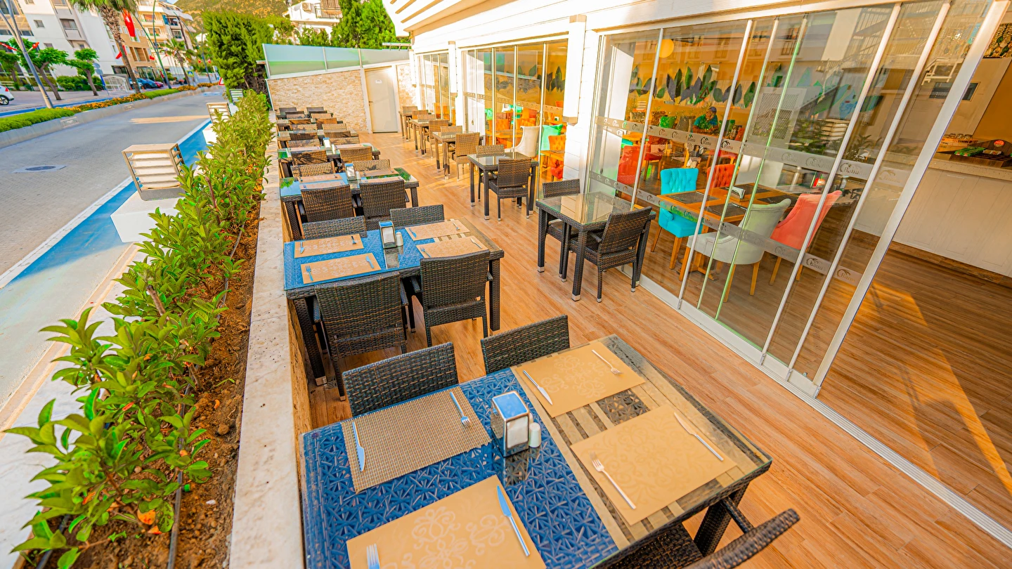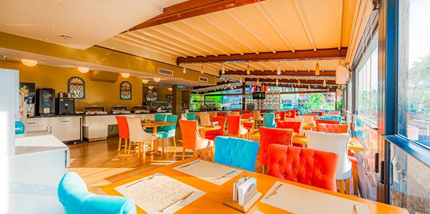 Tesisin belirlemiş olduğu markalar dahilinde 10:00-23:00 saatleri arasında lokal içecekler ücretsizdir. Türk Kahvesi, expresso, taze sıkılmış portakal suyu ücretli olarak sunulmaktadır.