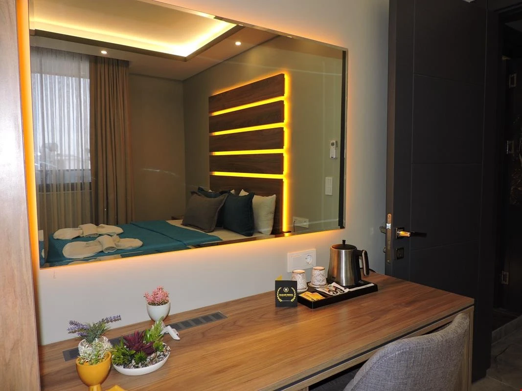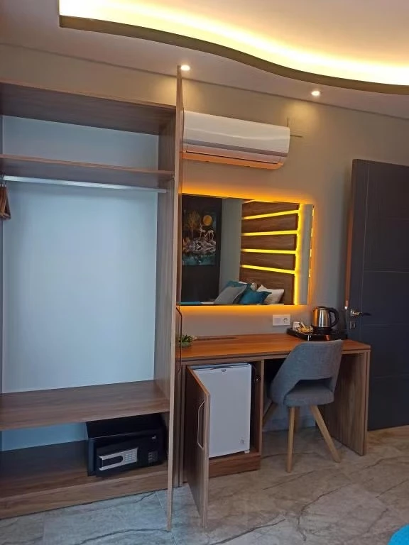 Daha Fazla GösterBaşar Hotel, Erdemli'de bahçe, teras, restoran ve bar sunmaktadır. Tesiste 24 saat açık resepsiyon, havaalanı transferleri, oda servisi ve tesis genelinde ücretsiz Wi-Fi sunulmaktadır. Otelin her odasında gardırop ve kasa bulunmaktadır. Başar Hotel'in konaklama birimlerinde duş ve ücretsiz banyo malzemeleri içeren özel banyo, düz ekran TV ve klima bulunmaktadır. Bazı odalarda balkon vardır. Konuk odalarında çalışma masası ve su ısıtıcısı bulunmaktadır. Tesisin konukları kontinental veya Amerikan kahvaltısının tadını çıkarabilirler. Başar Hotel, Kızkalesi Halk Plajı'na 100 metre ve Silifke Müzesi'ne 30 km uzaklıktadır. Çukurova ( COV Havaalanı ) tesise 124 km uzaklıktadır.