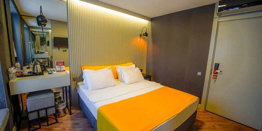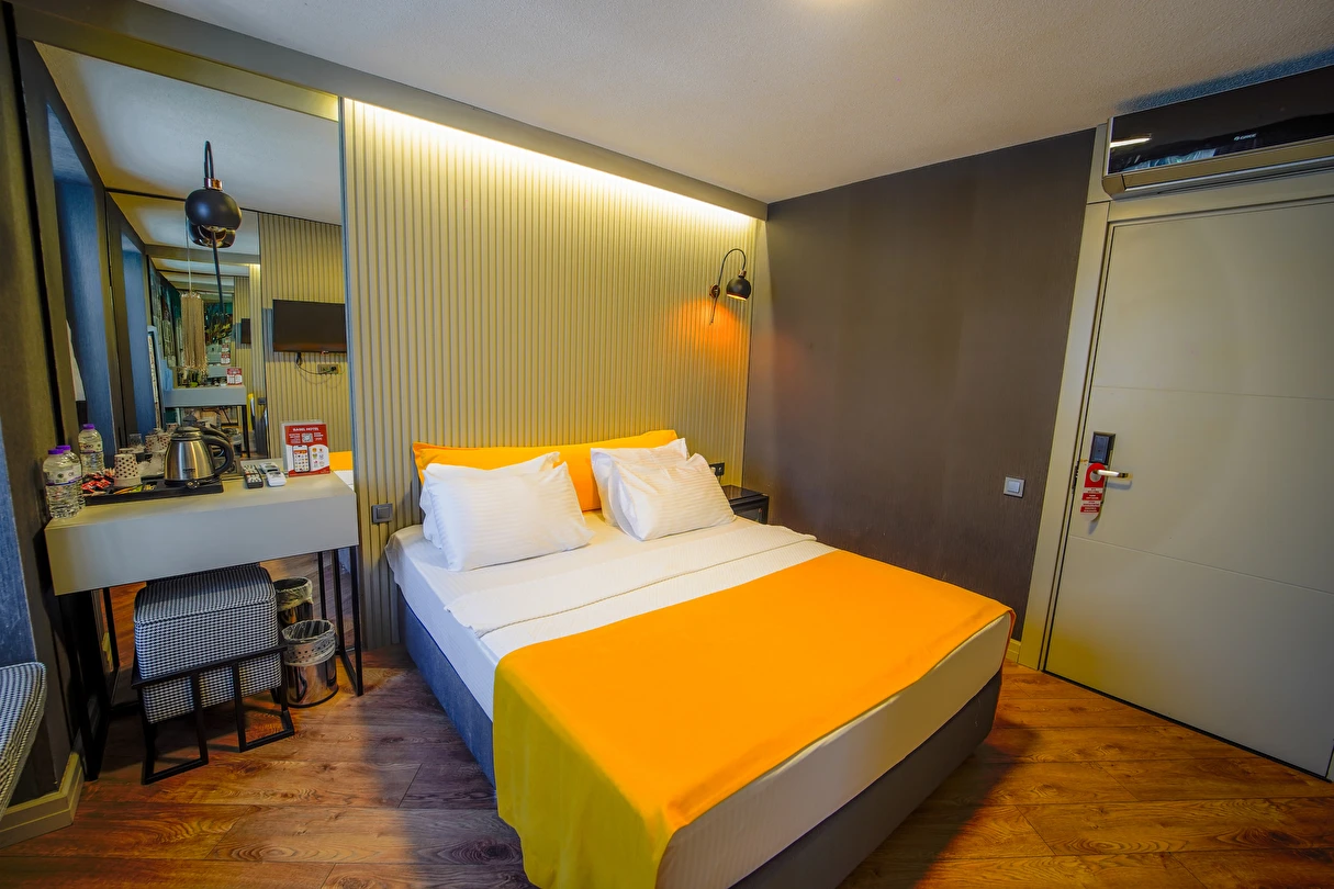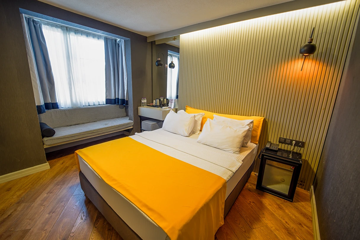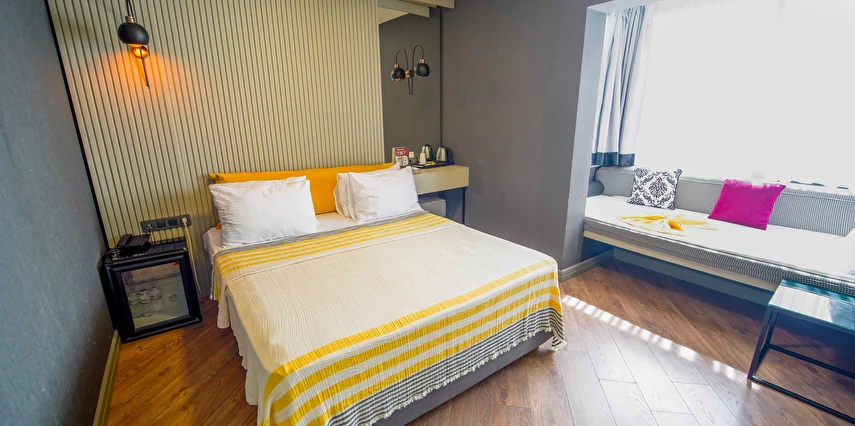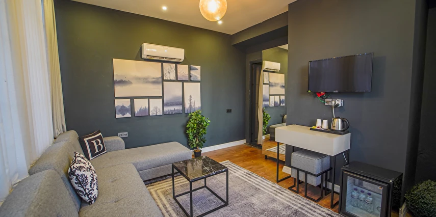 2. Modern ve Ferah Konaklama Her biri özenle dekore edilmiş 23 odamızda; ses yalıtımı, hızlı Wi-Fi, klima, minibar ve geniş ekran TV gibi tüm modern donanımlar standarttır. Şık parke zeminler ve lüks yatak takımları ile deliksiz bir uyku deneyimi sizi bekliyor.