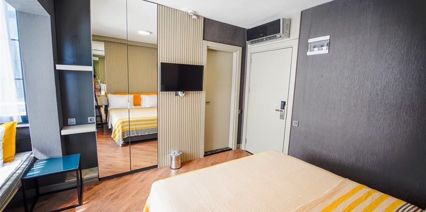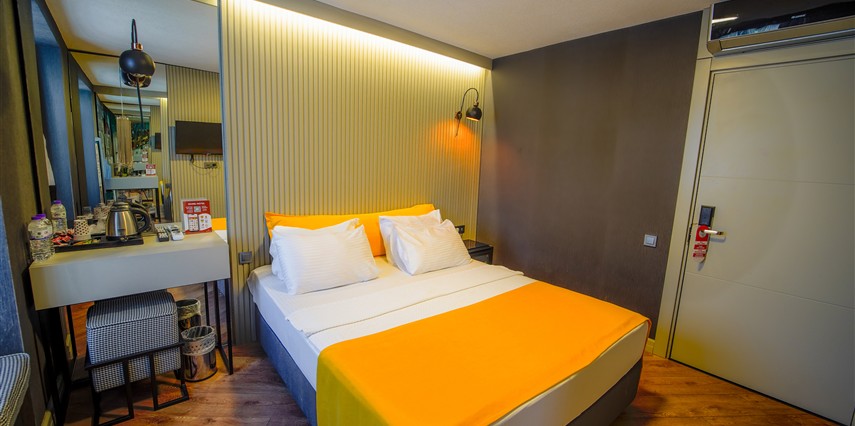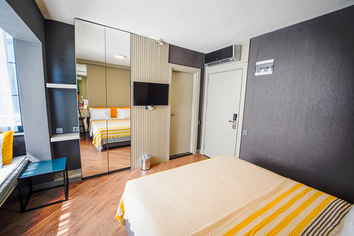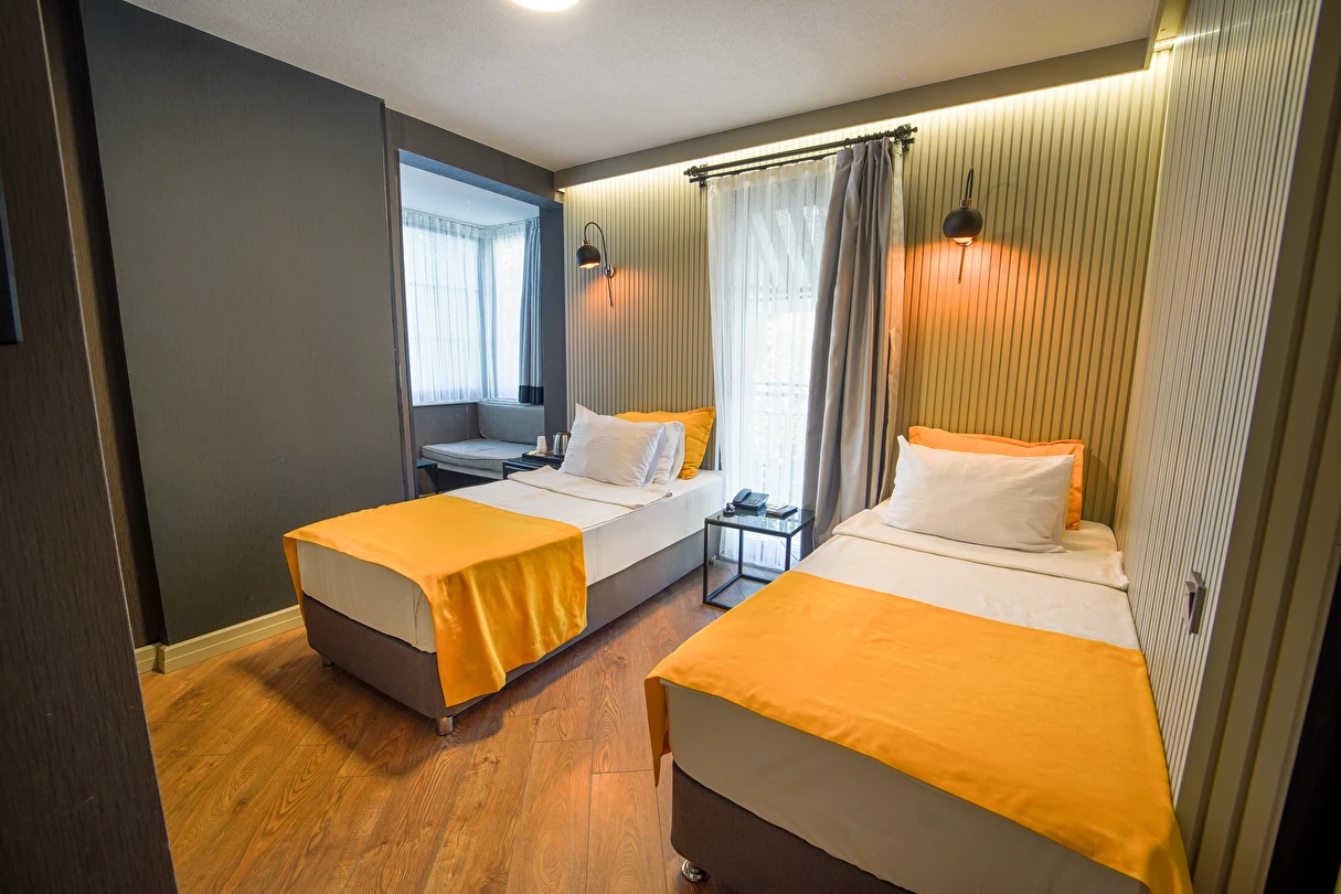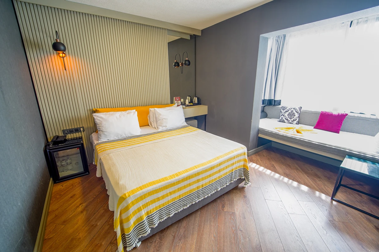 2. Modern ve Ferah Konaklama Her biri özenle dekore edilmiş 23 odamızda; ses yalıtımı, hızlı Wi-Fi, klima, minibar ve geniş ekran TV gibi tüm modern donanımlar standarttır. Şık parke zeminler ve lüks yatak takımları ile deliksiz bir uyku deneyimi sizi bekliyor.