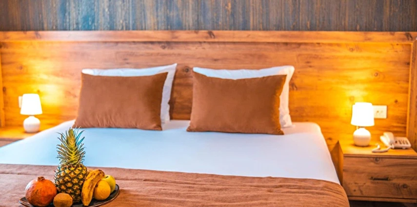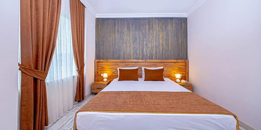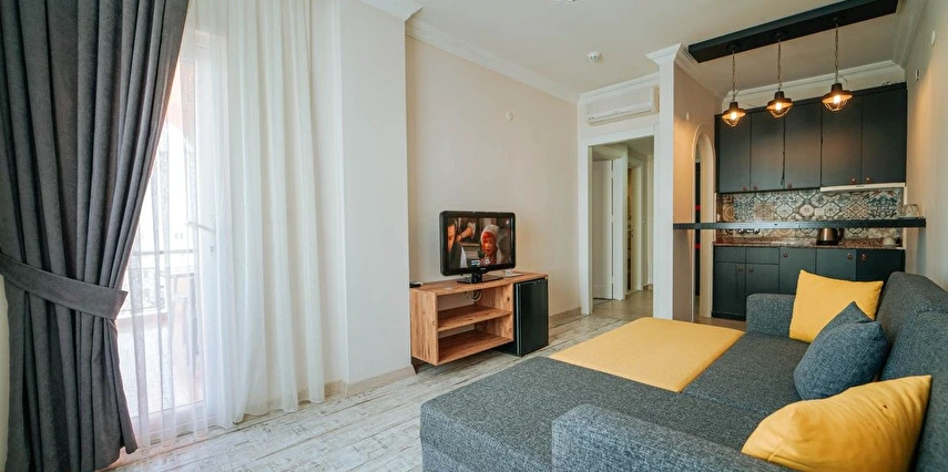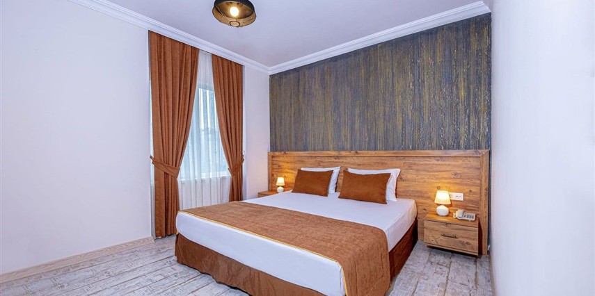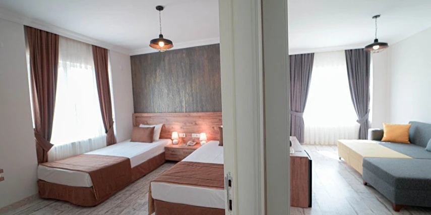 Odaların toplam genişliği 65 m² olup yatak odası ve oturma odasının ara kapılı olması misafirlere ev ortamına sahip daha konforlu bir konaklama imkan sunmaktadır. Yatak odasında komidin, abajur, gardırop ve klima bulunmakta ve özel kapılıdır. Oturma odasında oturma grubu, mini mutfak, bar tezgahı, elektrikli su ısıtıcı TV, TV ünitesi, klima ve balkon bulunmaktadır. Banyolarda saç kurutma makinesi, şampuan ve saç kremi, duşa kabin, her misafir için havlu takımı, terlik bulunmaktadır. Tüm odalar şehir manzaralıdır.