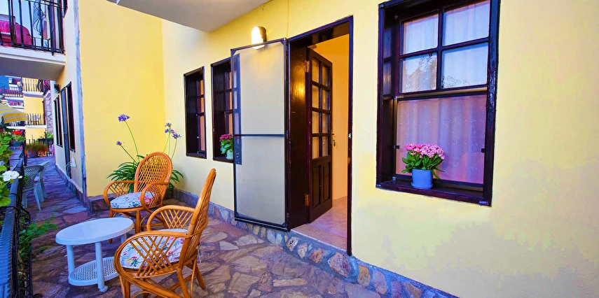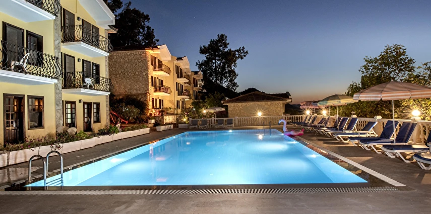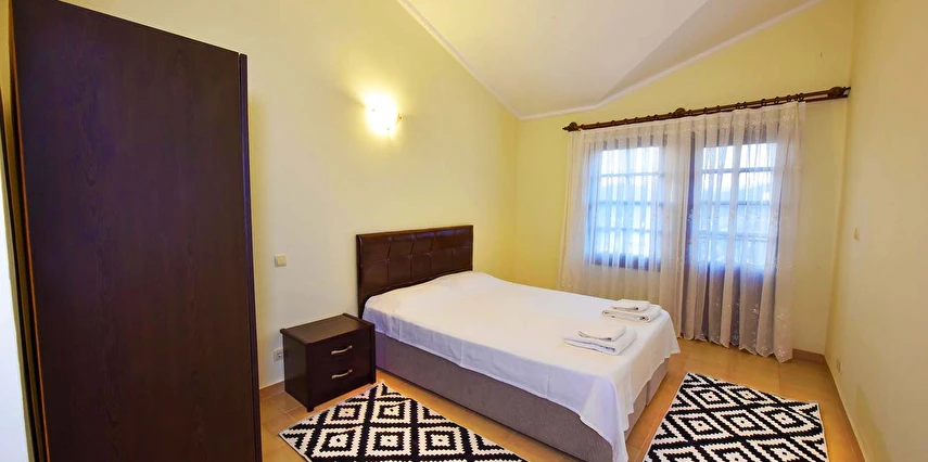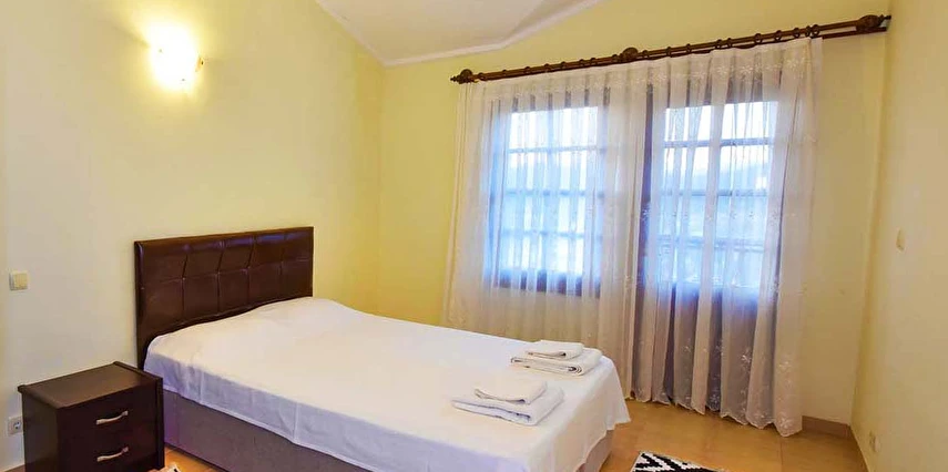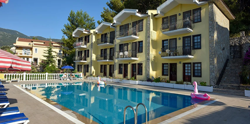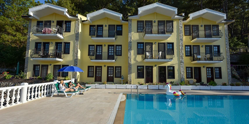 Fethiye'nin Hisarönünde bulunan Evlerimiz 2 yatak odası ve 2 banyosu ile toplam 5 kişi konaklama kapasitesine sahiptir. Modern mimariye sahip Evlerimiz büyük havuzlu ve bahçelidir. Evlerimiz müstakil girişlidir. Konum olarak hisarönü merkezde olup restorant bar ve cafelere 2 dakika yürüme mesafesindedir ayrıca ölüdeniz plajlarına gitmek isteyenler minibüsle yada araçla 5 dakikada gidilebilir. Evlerimizin mutfağında ihtiyacınız olan bütün araç gereçler mevcut olup bahçesinde barbekü yapılabilir. ÜCRETSİZ WİFİ vardır. Kalabalık aile grupları için site içinde 8 adet aynı evlerimizden mevcut ve çocuklu ailelerimiz için sitemizin içinde bir çocuk parkı bulunmaktadır.