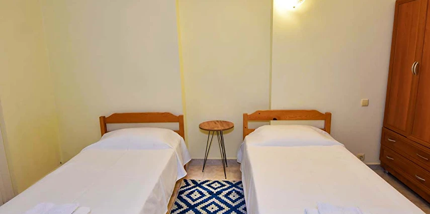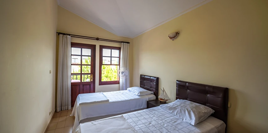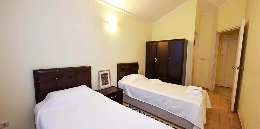 2. Yatak Odası: Klimalı. 2 adet tek kişilik yatak , komodin , dolap vardır. ebeveyn banyoludur, balkonludur.