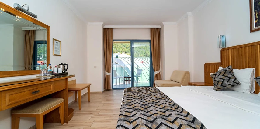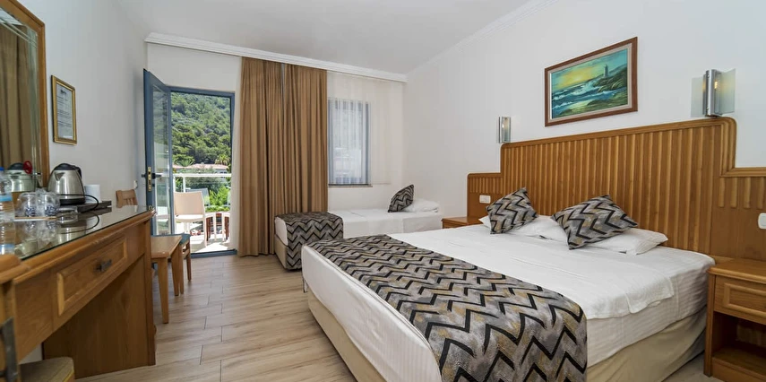 Fethiye’nin en popüler tatil beldesi Ölüdeniz’de bulunan otelimiz, ailelerin harika anılar yaratması için mükemmel bir yerdir. Havuz kenarında dinlenebilir, çocuk havuzunun keyfini çıkarabilir ve açık büfemizden hafif yemeklerin tadını çıkarabilirsiniz. Ölüdeniz Plajı'na yakınlığı ile denizin tadını çıkarmak isteyenler için ideal bir seçimdir.